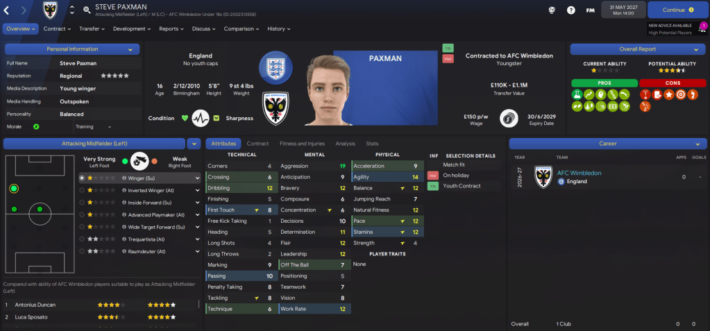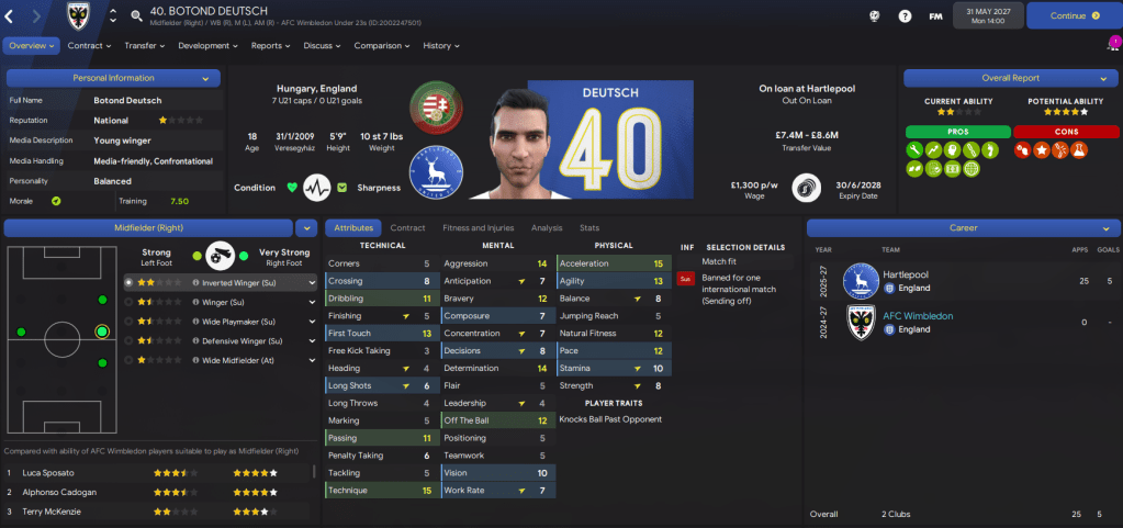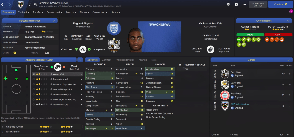 As a Football Manager, I very much pride myself on being able to pick a prospect, develop them, and sell them for a profit. With Wimbledon, sales of homegrown players have already enabled us to raise over £17m. Those players are, in chronological order: