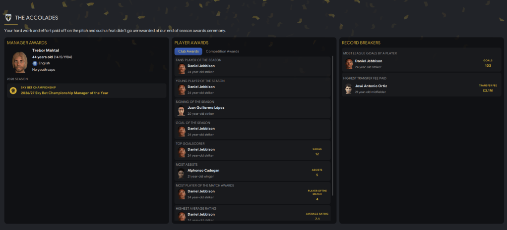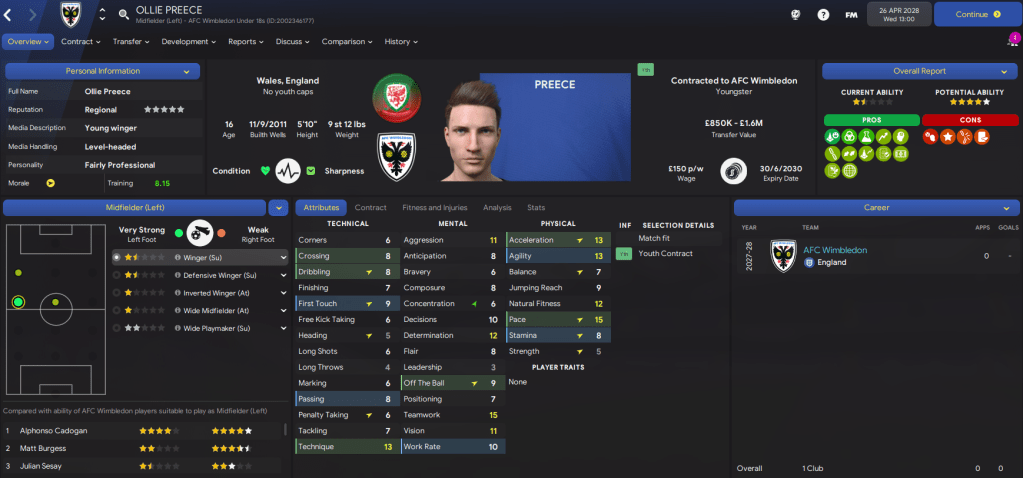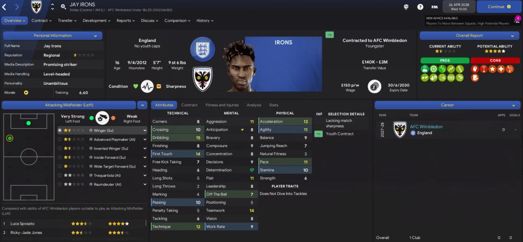 That situation is further boosted by the really exciting youth talent at the club, not least our own youth academy prospects. We had yet another great youth intake led by exciting striker Jay Irons, who scored 4 and assisted 1 as our youth candidates beat the under 18s 6-1, and wingers Ollie Preece and Andrew Battersby. It also had 6 players with up to 4-star potential and 5 players with 3-star potential.