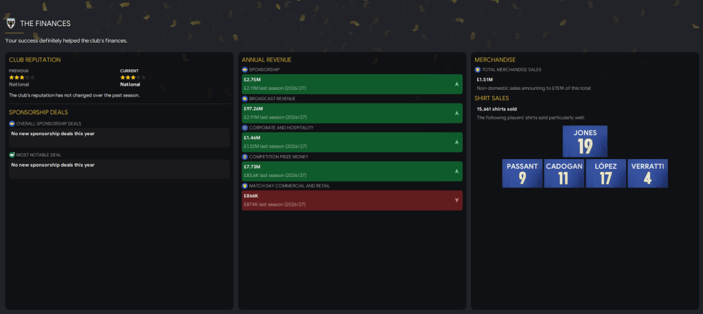 Jebbison led the way with 12 goals in 30 appearances, followed by Passant’s 11 in 34 and Cadogan’s 7 in 34. Worryingly, Cadogan was our top assister with 5, followed by Ortiz, Verratti and Passant with 4. While the signing of Verratti was a massive flop, the likes of López and Ortiz have shown glimpses of promise. So here’s clearly plenty of work to do but this season offers a solid foundation to build for the future. But special mention has to go to Cadogan, who continues to progress at sensational speed and is now considered our only Premier League standard player with plenty more improvement to come.