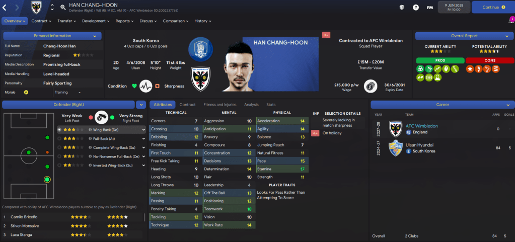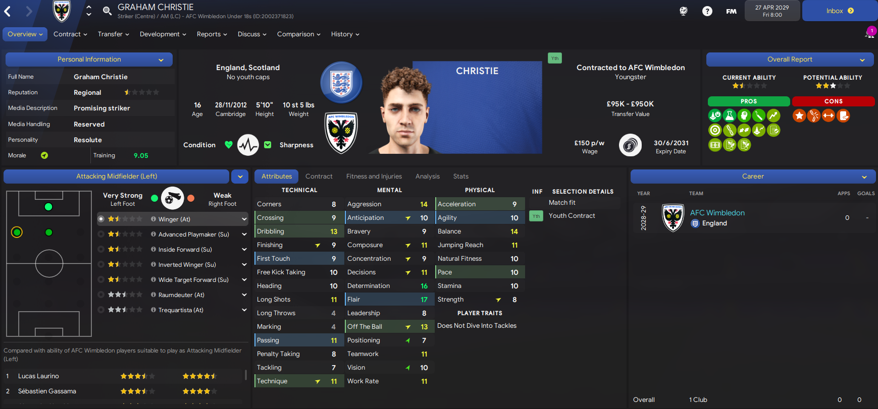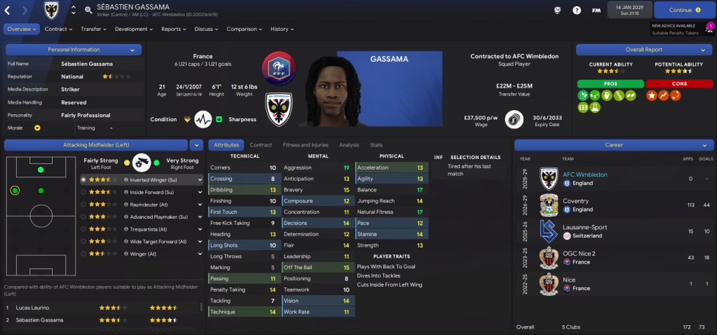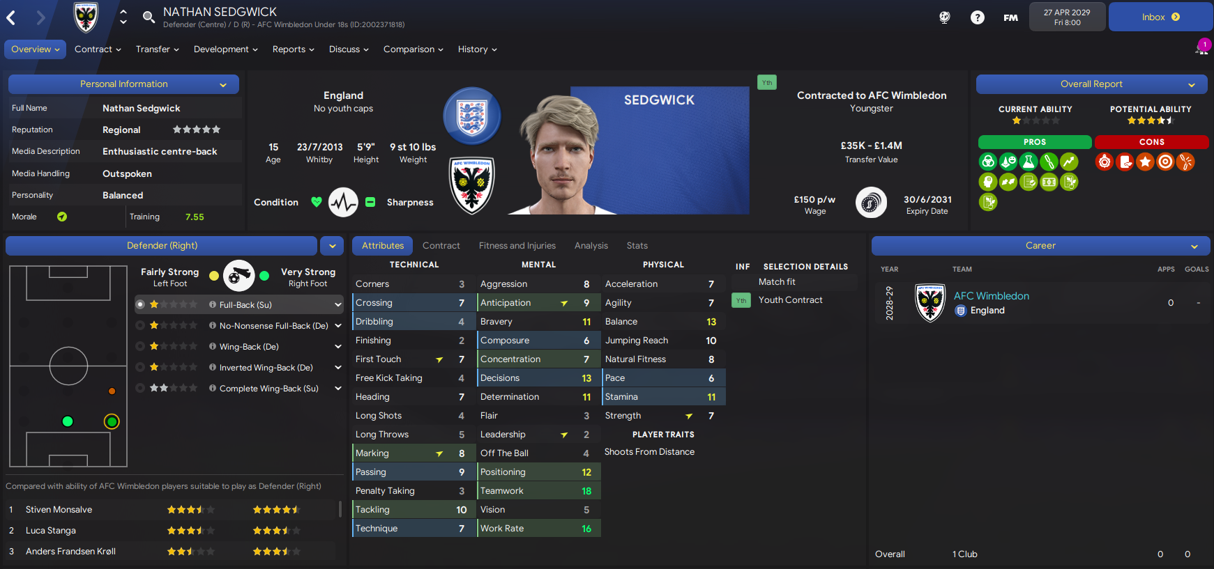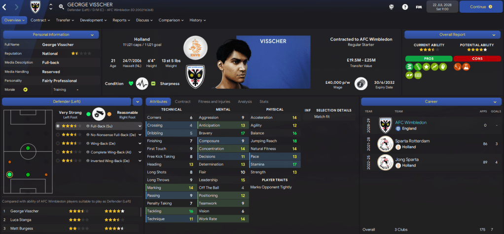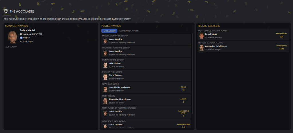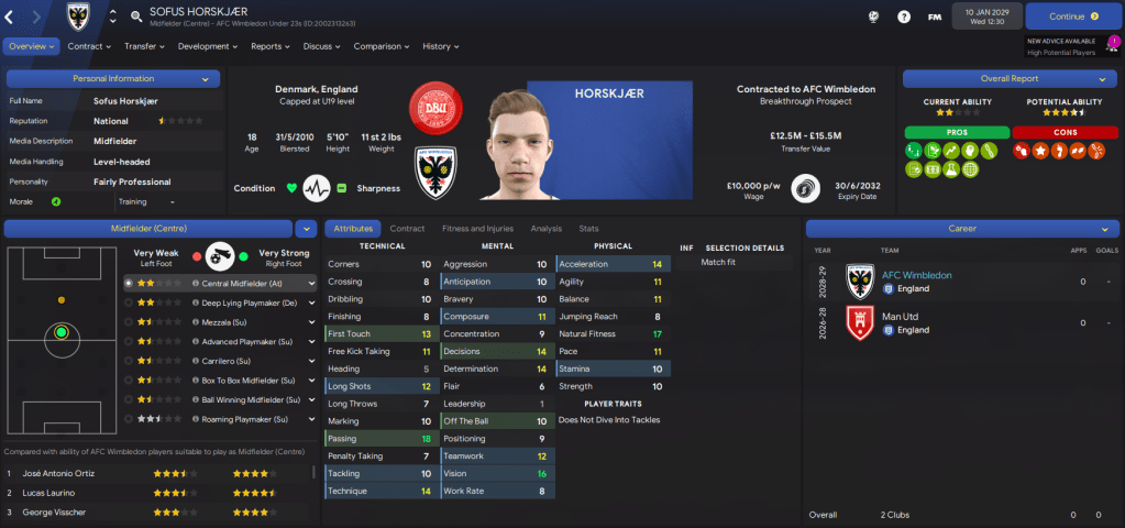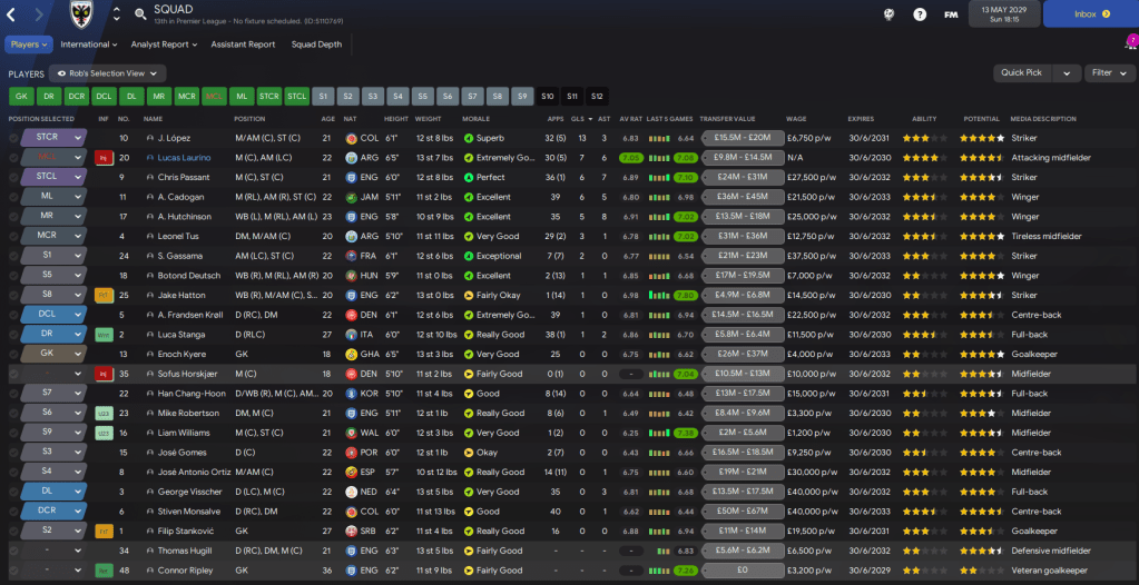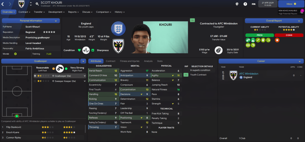 The amount of potential at the club is really exciting, we just need to see some of these youngsters begin to fulfill it a bit quicker. We also had another good youth intake containing 3 “elite talents” in goalkeeper Scott Khouri, right-back Nathan Sedgwick and winger Graham Christie. They joined Kyere, who was named 43 on NxGn 2029.