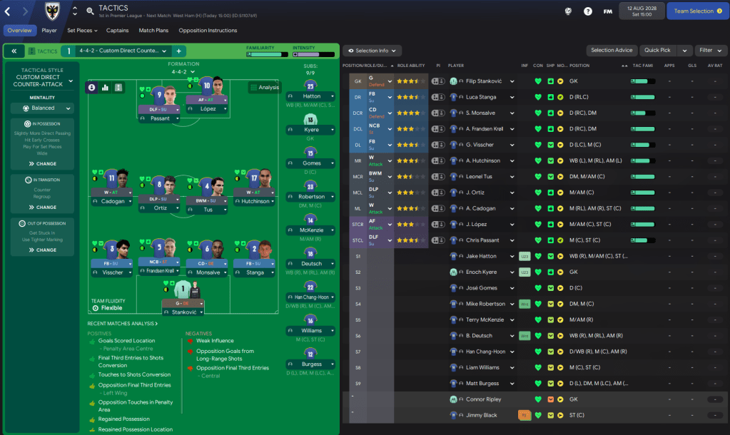 I’ve made one slight tactical tweak, moving Chris Passant’s striker role from a poacher to his preferred deep-lying forward. And hopefully that will offer improved link-up between the midfield and the attack.