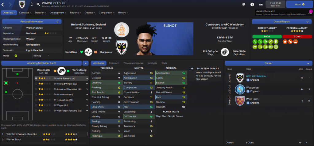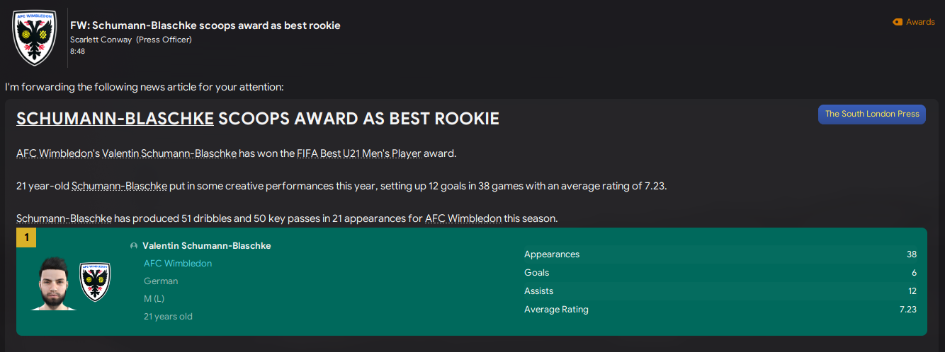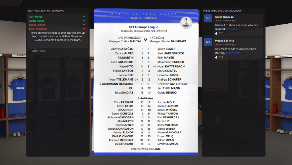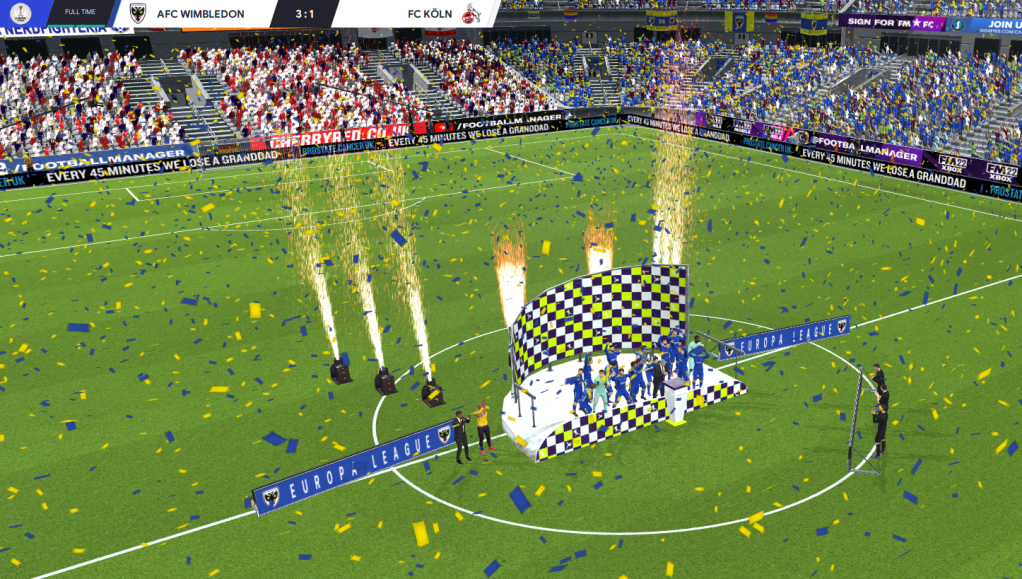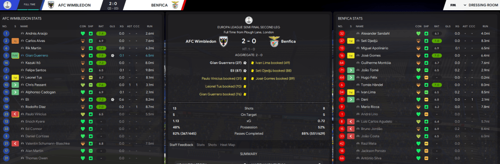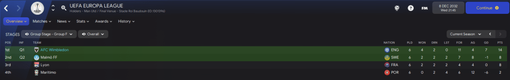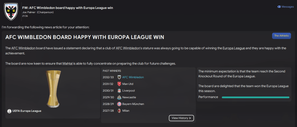 Against all the odds, AFC Wimbledon had gone from League One mediocrity to qualifying for the Europa League in 11 years of Football Manager. An exciting 2031/32 conclusion saw them denied Champions League in the final minute of the final day, but Trebor Mahtal was excited to lead the club into Europe for the first time.