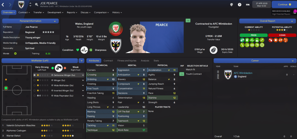 We also tried to keep the board happy, given they were “devastated” by our inability to sign England-based players and started vetoing bids. We got some very promising ones like 16-year-old midfielder Jordan Trodd for £3m from Brighton and Dutch winger Warner Elshot for £8.5m from West Ham, then loaned in wonderkid left-back Kazuki Ito from Man UFC.