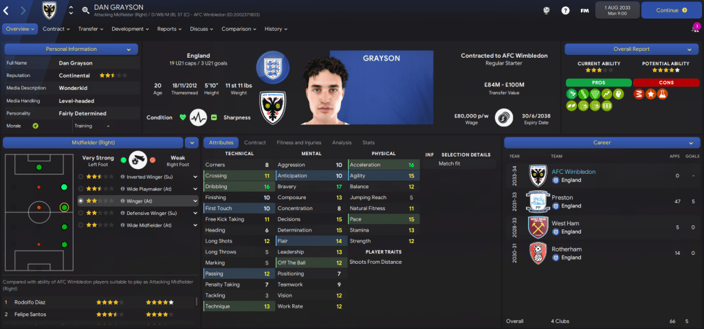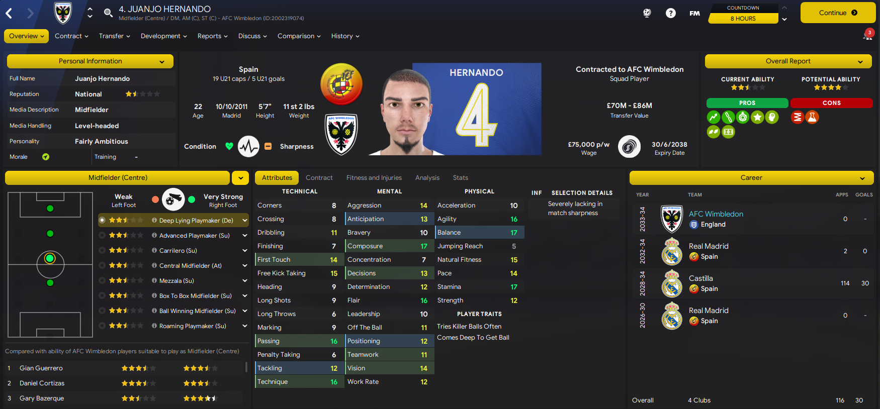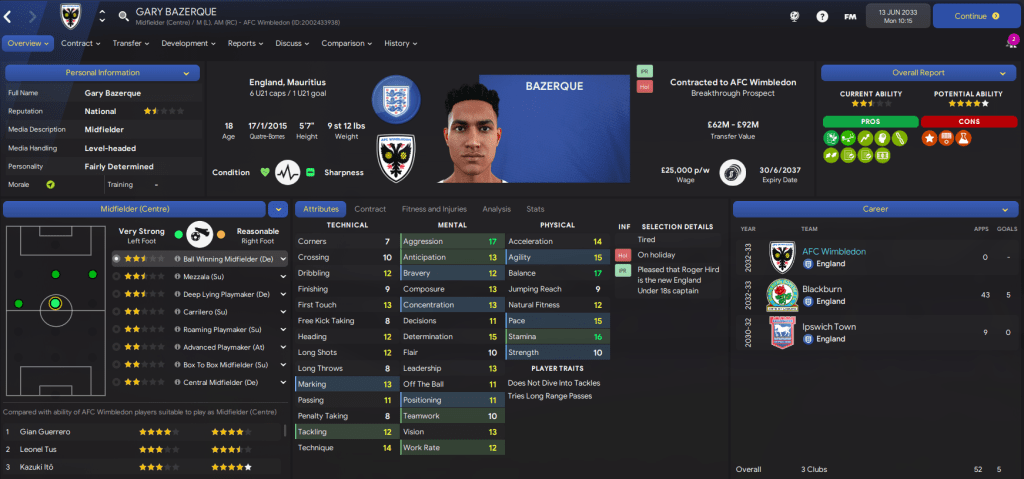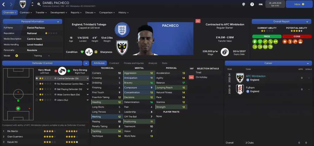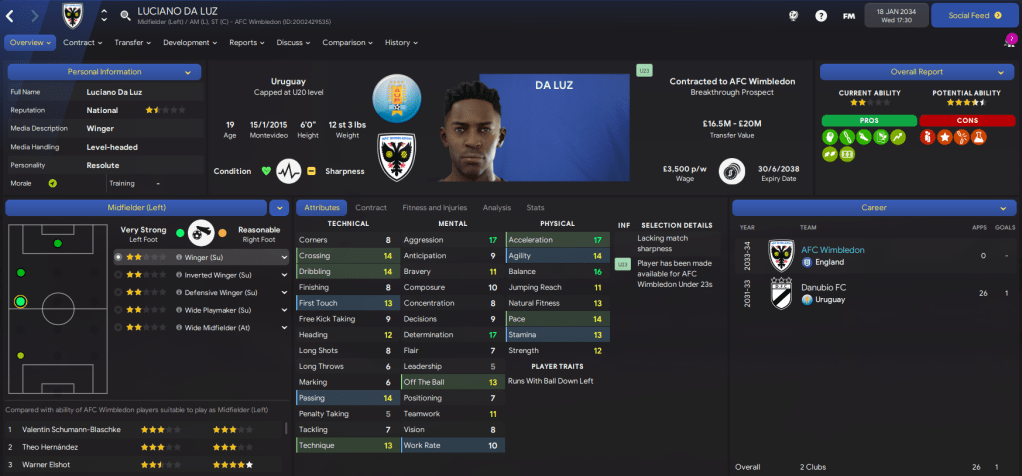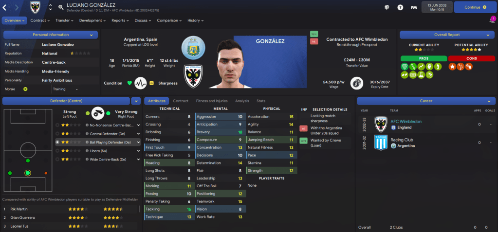 Our first signing saw Guerrero joined by an exciting new defensive colleague and Argentinian compatriot in Luciano González, who joined for £3.5m. A more expensive outlay saw us meet the board’s demand for players based in England with 18-year-old midfielder Gary Bazerque for a hefty £30m from Ipswich. Also meeting the domestic player requirement was centre-back Daniel Pacheco, who came in for £4m from Fulham and turned out to be better than I expected.