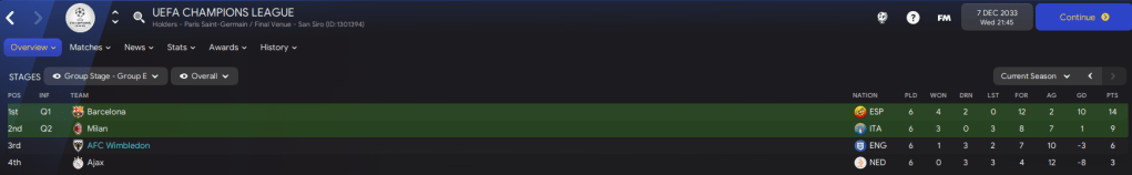 It’s safe to say we weren’t fancied to win the Champions League, with odds of 500/1. But we were in pot 1, and if you thought that would get us a good draw… then you were very wrong. We got a group with Barcelona, Milan and Ajax – I couldn’t have handpicked a harder group!