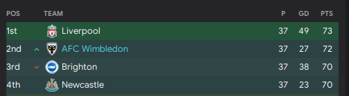 That set up a thrilling final day showdown. We sat 2nd, just 1 point behind Liverpool and 2 clear of Brighton and Newcastle. We entertained Newcastle, Liverpool had an easy game at Norwich and Brighton hosted Fulham.