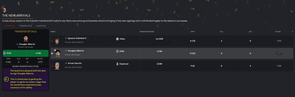 The youth was added to with two exciting signings in 18-year-old striker Ignacio Galimberti, who arrived for £6.25 million from Vélez, and 19-year-old right-back Arnau Garzón for £23 million from Espanyol. But the most exciting new arrival may be 18-year-old Douglas Alberto, who joined for £6 million from Ponte Preta and is being retrained as a central midfielder.