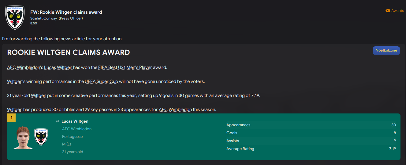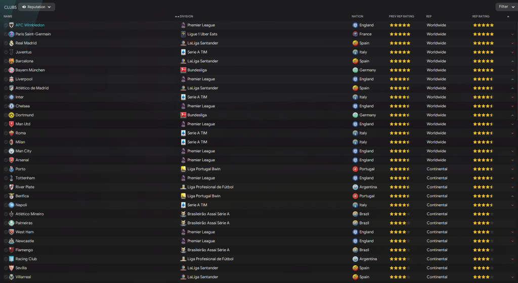 Despite this success, we remain 3rd in the European club rankings behind Liverpool and Real Madrid, so the aim of the save is now to establish AFC Wimbledon as the best team in Europe. That said, AFC Wimbledon has now become the most reputable club in the world.