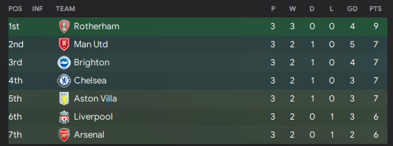 We began our title defence at Brighton and, with an exhausted squad, did so pretty poorly in an awful 0-0 that saw the two-time reigning best player in the world Eli reach 14 matches without a goal. And another followed at home to Man UFC. But we got the campaign started as Eli bagged a hat-trick in a 4-0 away win at Fulham, which means Julian now has 7 clean sheets in his first 9 games for the club. And, after 3 games, Rotherham United sat top of the Premier League!