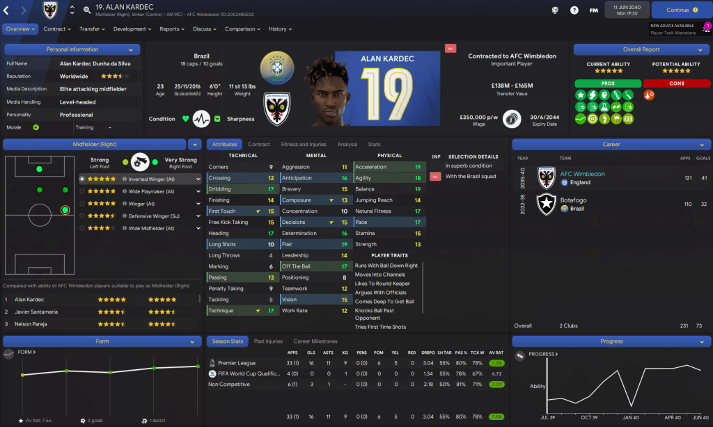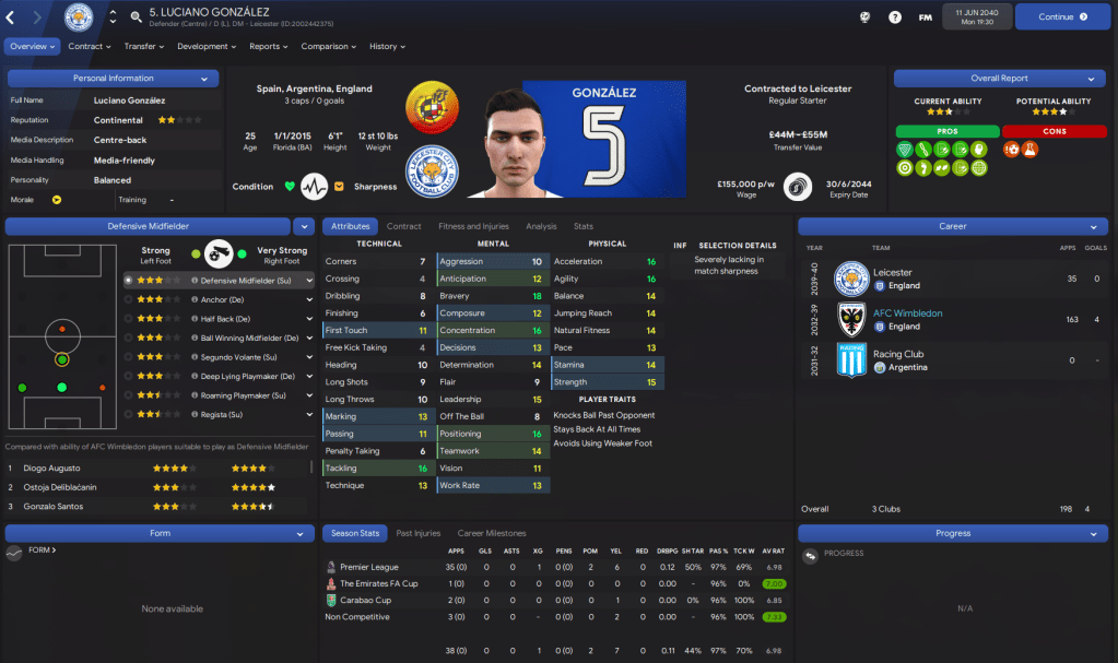 CM – Leonel Tus: It was certainly a surprise to see Tus retain his place, but he was pretty impressive after signing in our first season in the Premier League in 2027. He stayed with us to lead us to our first title in 2034 before moving on to River Plate.