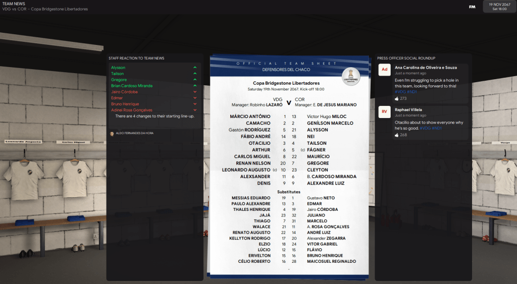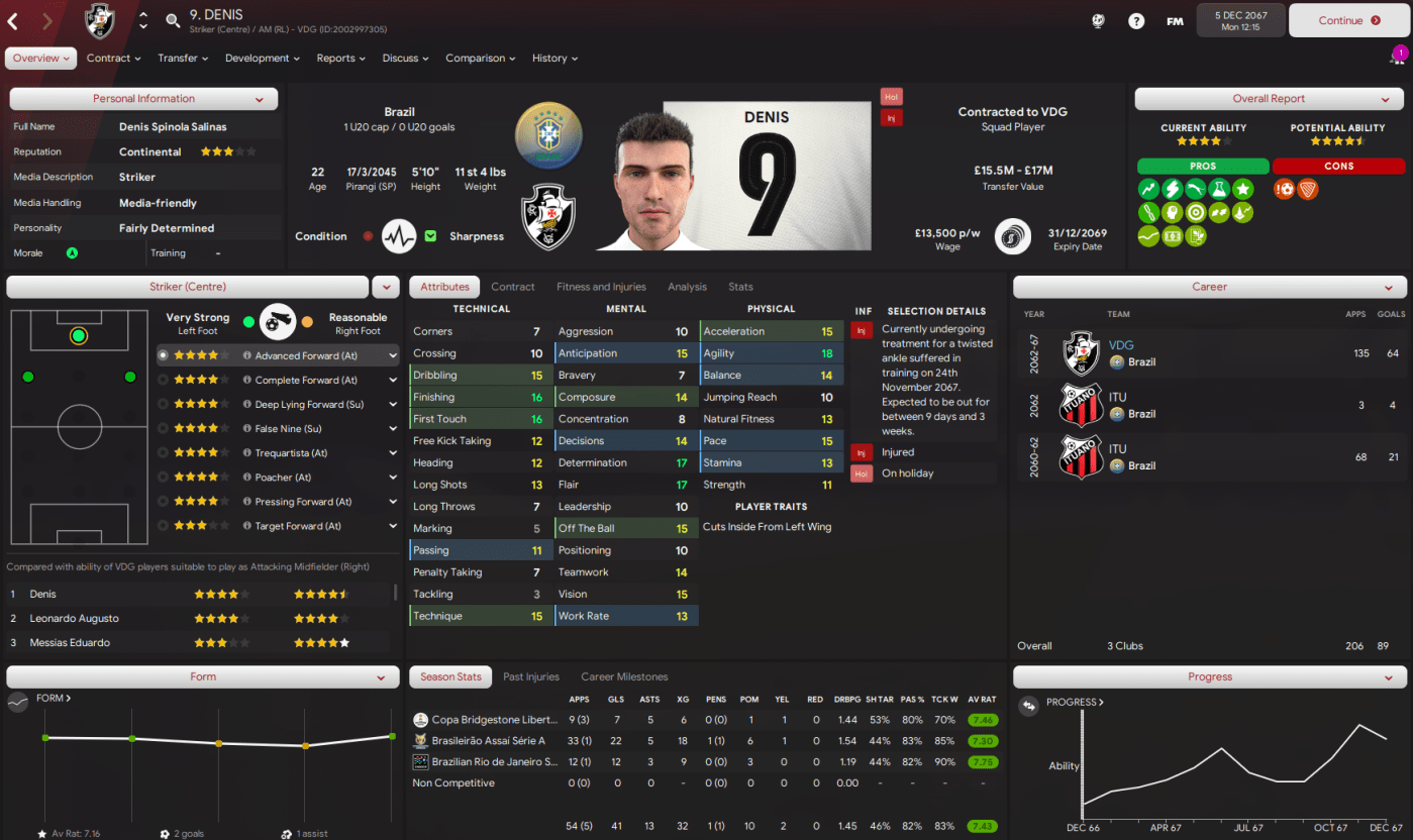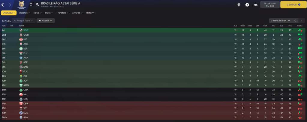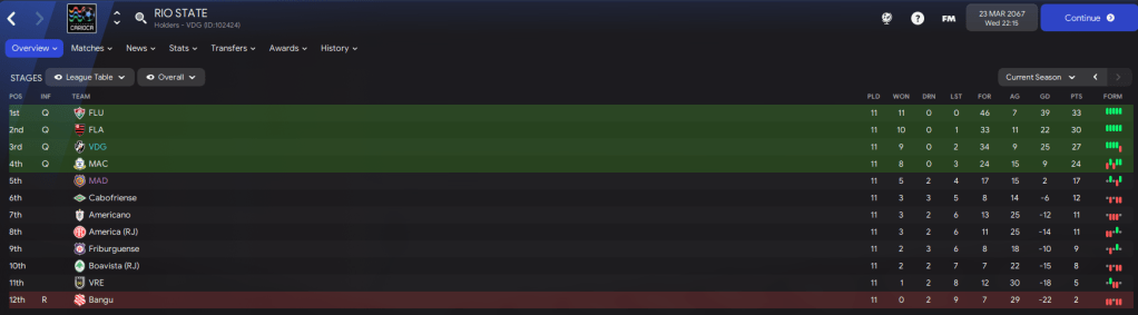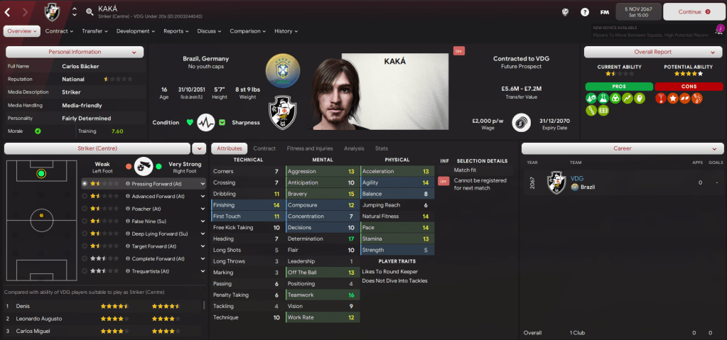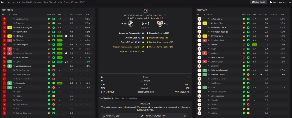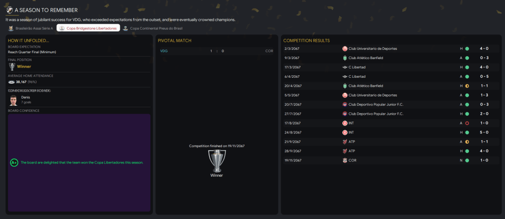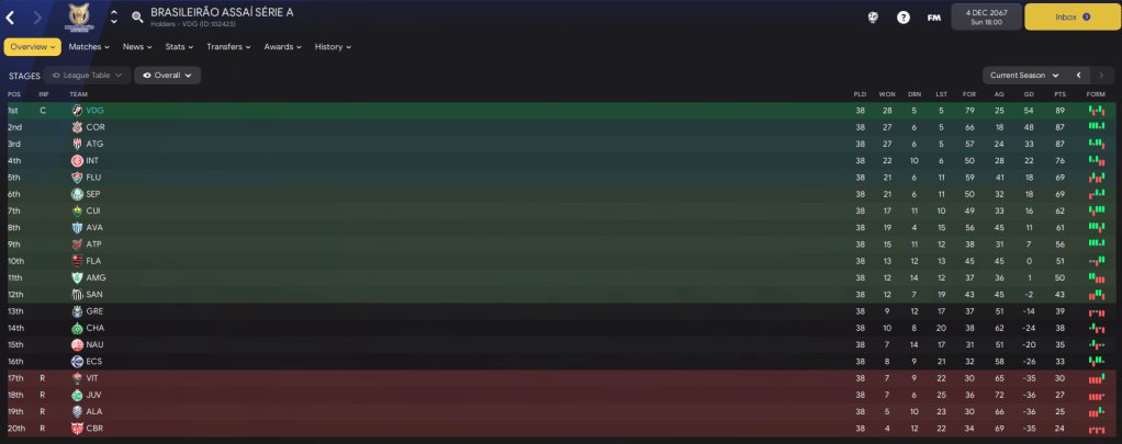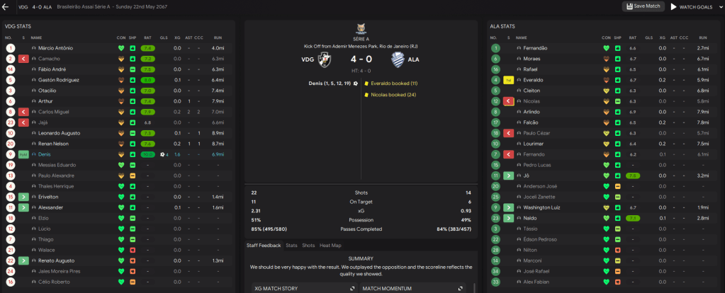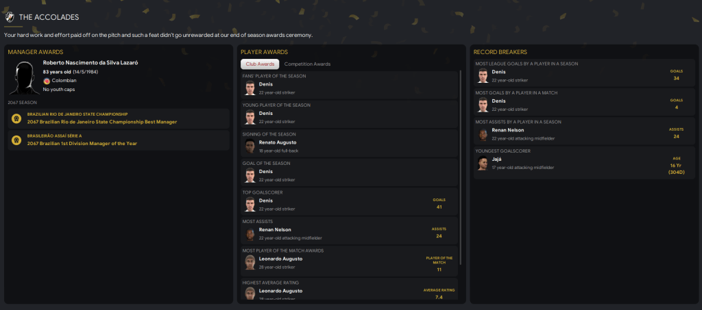 At the ripe old age of 82, Robinho Lazaró was as hungry as ever, leading his exciting young Vasco da Gama squad into the 2067 campaign. HIs big aim for the season ahead was to take a title fight to Goianiense, who’d won the last two Série A, after finishing third in 2066.