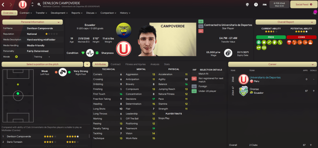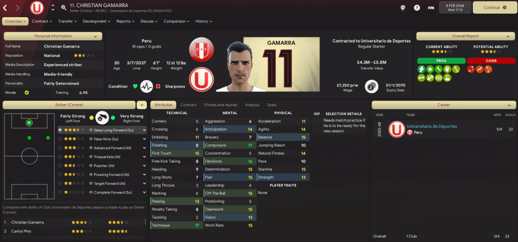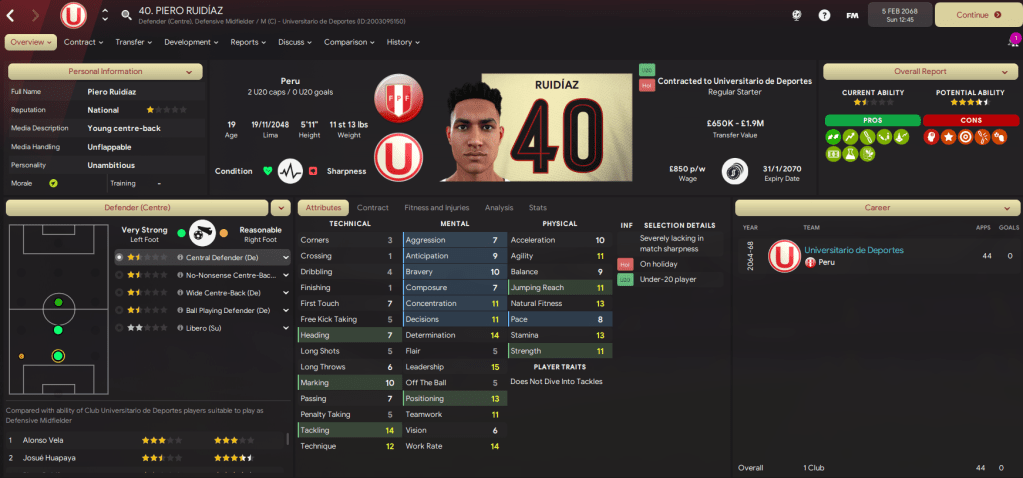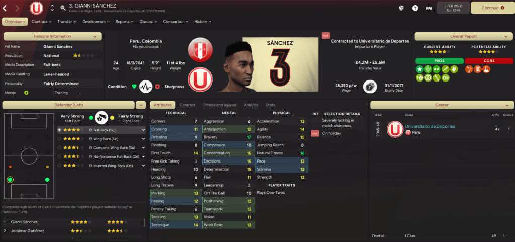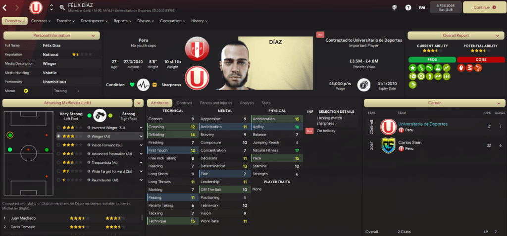 But he ended up only spending a month or so in isolation as an intriguing challenge arose with a rival of one of his former clubs. Because Lazaró was heading back to Lima, in Peru, with Club Universitario de Deportes as, on 6 January 2068, he signed a one-year deal worth £7,000-per-week.