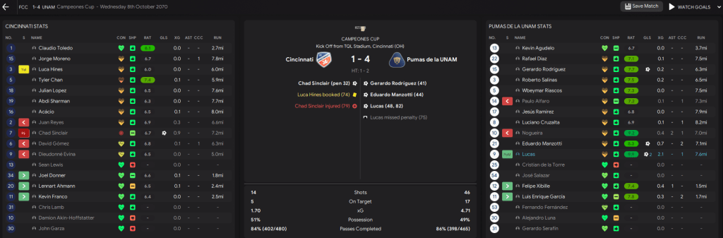 That success sent them into Campeones Cup at 2069 MLS Cup winners FC Cincinnati – who’d since sacked their manager. The game took place at Cincinnati’s stadium, which seemed a little unfair, while Pumas had nine first-team players on international duty! But those remaining were still good enough to rack up an amazing 46 shots and thump Cincinnati 4-1 led by a Lucas brace and two Nogueira assists.