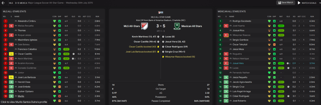 Lazaró was also selected to lead Mexican All-Stars against MLS All-Stars – which bizarrely took place on the same day as Pumas’ opening Copa MX group game! Also odd was the squad selection, which had no right-backs and an overload of wingers, so Lazaró went for an 4-1-3-2 formation with a winger at right-back, a holding midfielder and three attacking midfielders. Four Pumas players were in his starting 11 and played a key role as Vera scored twice and Lucas once in a thrilling 5-3 win.