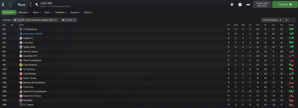 That set up a semi-final clash with Puebla and the games overload caught up with Pumas as they fell to a 3-0 first leg defeat. And a 4-2 home win wasn’t enough to avoid a semi-final exit. And Puebla went on to win Apertura, defeating Monterrey 3-2 on aggregate in the final.