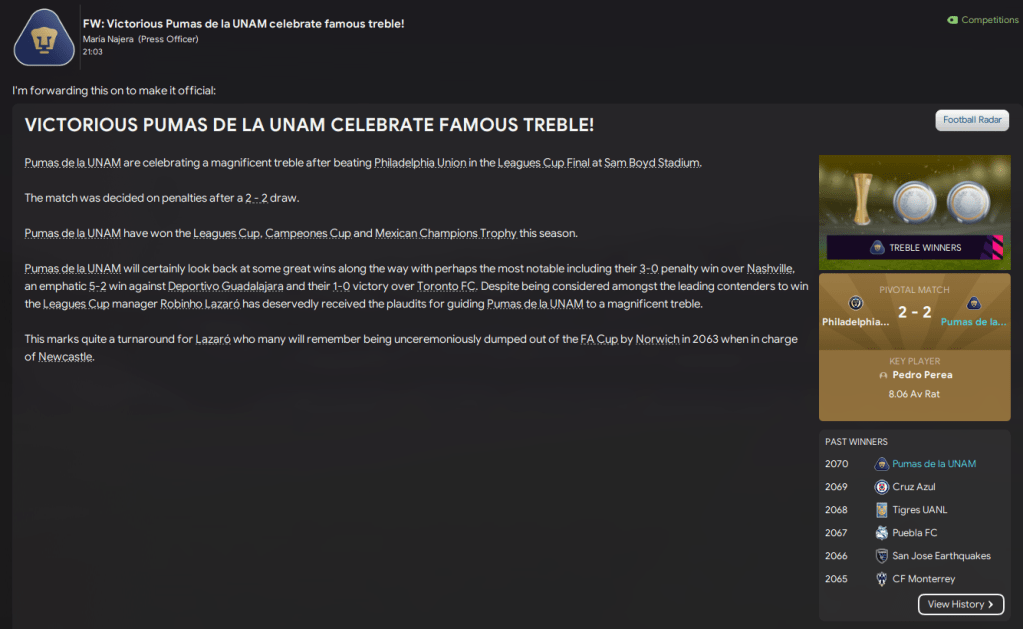 How would Lazaró’s Pumas side fare without their star man? And could Lazaró bring in a suitable replacement? Join us tomorrow to find out!