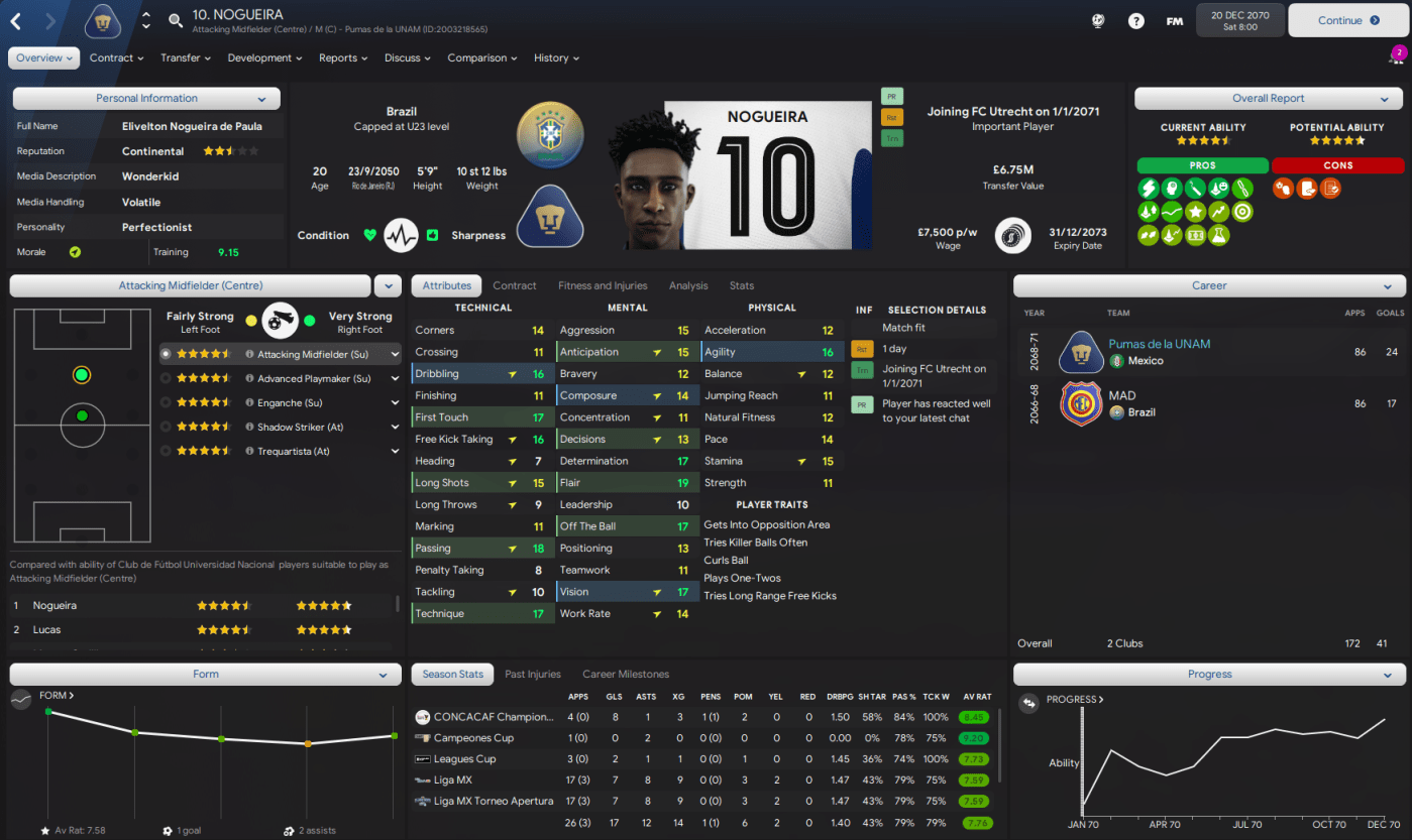 But time was up for at least one of them as teams finally met Nogueira’s ridiculously low minimum fee clause. And the attacking midfielder joined FC Utrecht for just £6.75 million in January 2071.