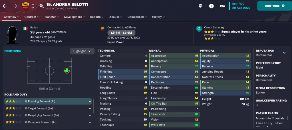 Can Abraham keep scoring at more than two goals per game? Find out next time as we push further ahead into our first season on FM23 with AS Roma!