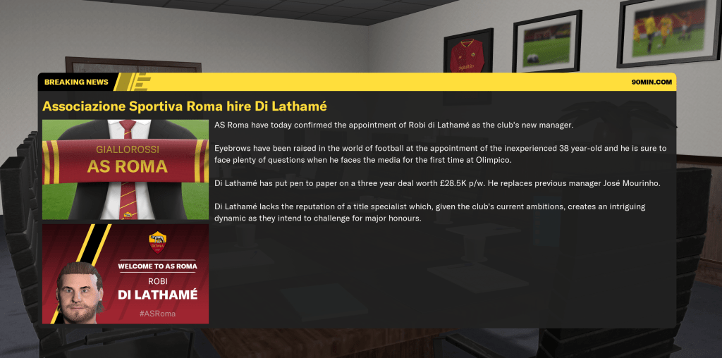 So our task during the Beta period (and probably slightly beyond it) is to overcome the dominant forces of AC Milan, Inter and Juventus to win Roma’s fourth title and try and take them to a first “proper” European trophy. And the man in charge of that task is 38-year-old English boss Robi di Lathamé.