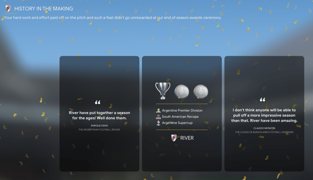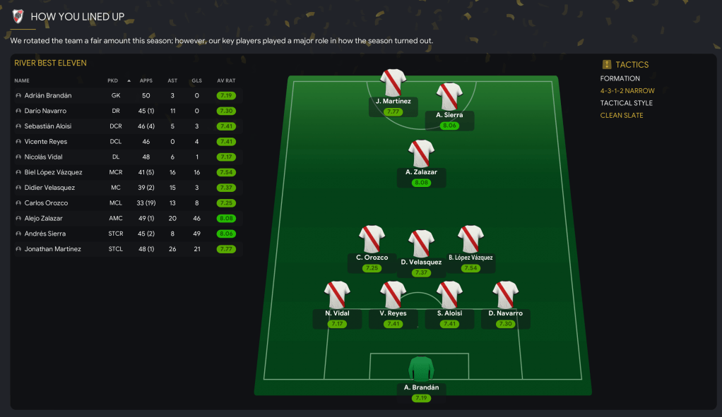 Lazaró thought this would probably be his last season in management but, just two points away from becoming the greatest manager of all time, he had to keep going, didn’t he? Luckily, River had given him another one-year contract, so Lazaró decided to stick with this exciting young squad for another season.