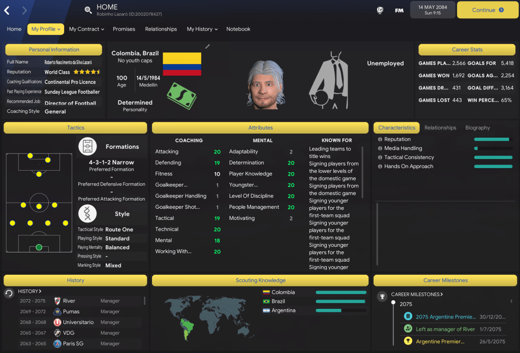 After a stellar career that saw him become the Greatest Manager Of All Time, Robinho Lazaró considered the easy way out and retiring peacefully. Indeed, he spent plenty of years relaxing between his homes in Medellín, Cali and Rio de Janeiro happily watching hours of football per day. But an itch still burned deep inside his Football Manager soul.