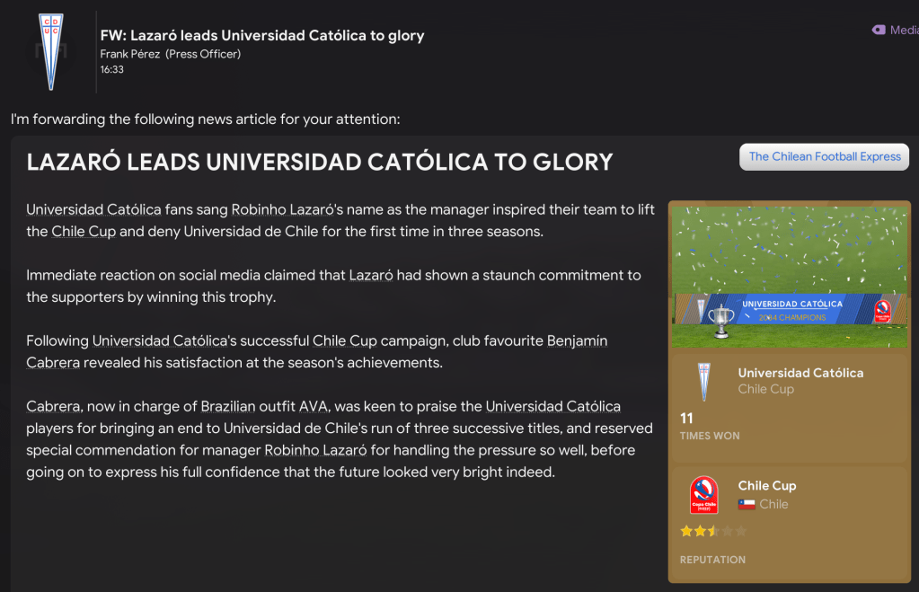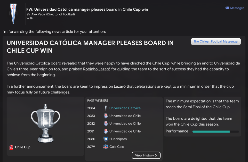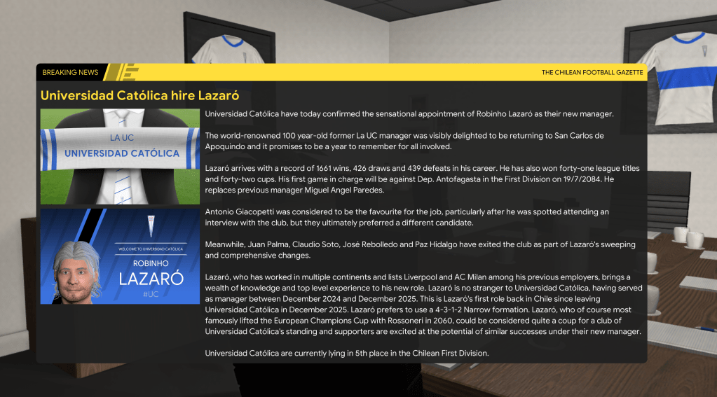 Lazaró had his work cut out to improve this Católica squad but he did see plenty of positives from his half-season. With that in mind, we’ll come back for more of Lazaró as a 100-year-old Football Manager tomorrow!