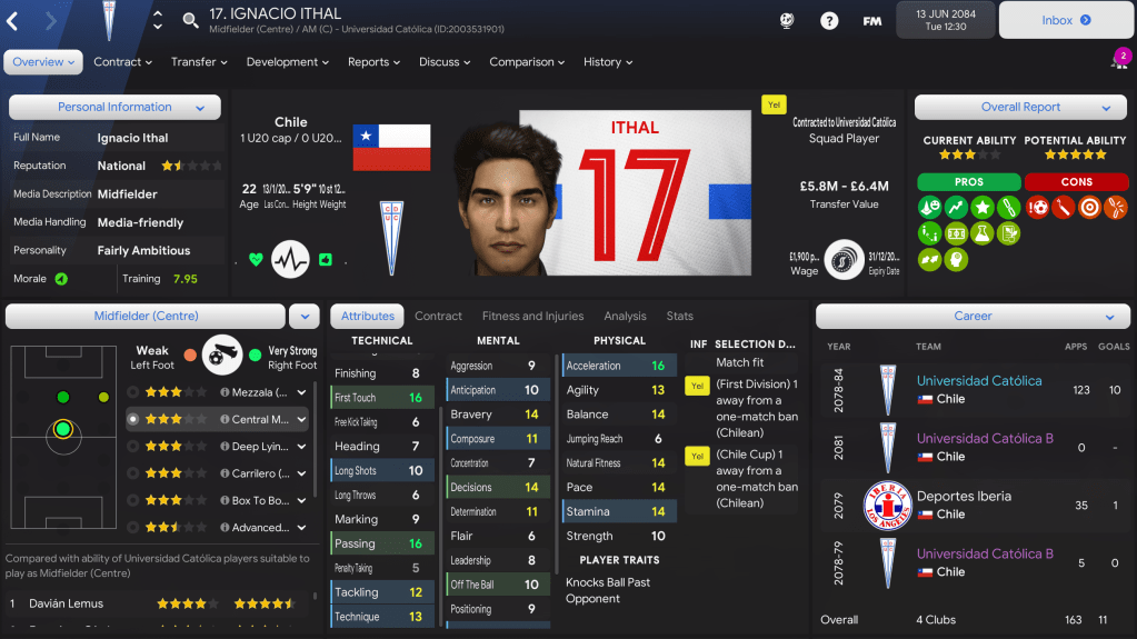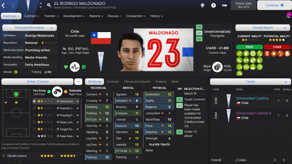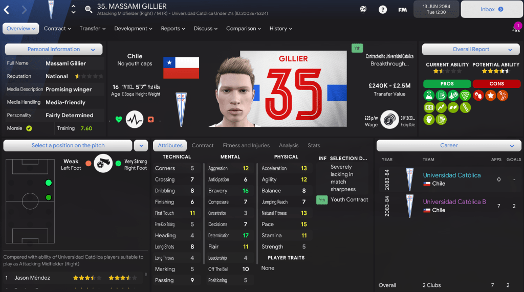 Católica had decent youngsters coming through, but that was added to by a solid youth intake. The intake star was Rodrigo Maldonado, who instantly became the fourth-best striker at the club so Lazaró threw him straight into the first-team, along with three 4-star potential players.