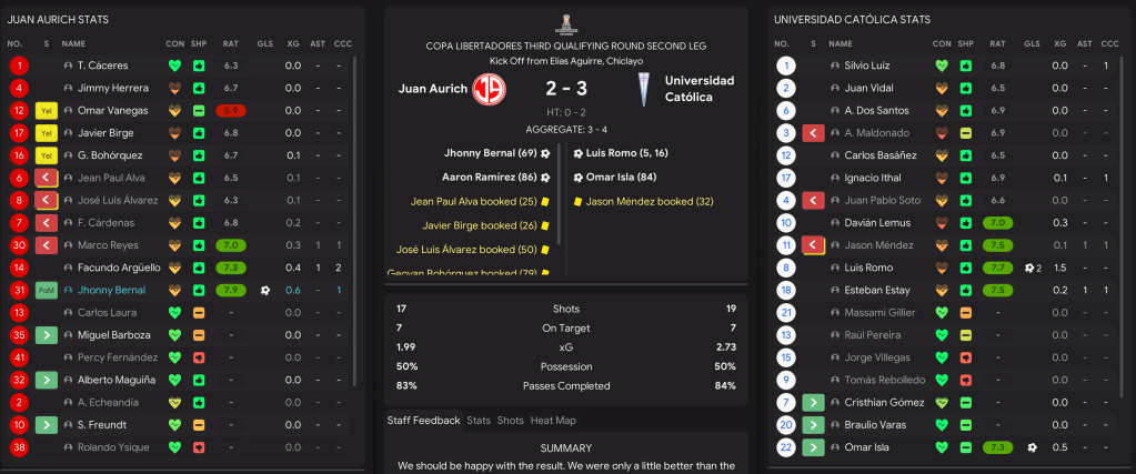 That took Católica through to the third qualifying round against Peruvian side Juan Aurich. They struggled to a 1-1 draw at home and yet again had Romo to thank as he scored twice in the first 16 minutes in Peru. And a late strike by 17-year-old full-back Omar Isla sealed a 4-3 aggregate win that sent Católica through to the group stages for just the second time in 20 years!