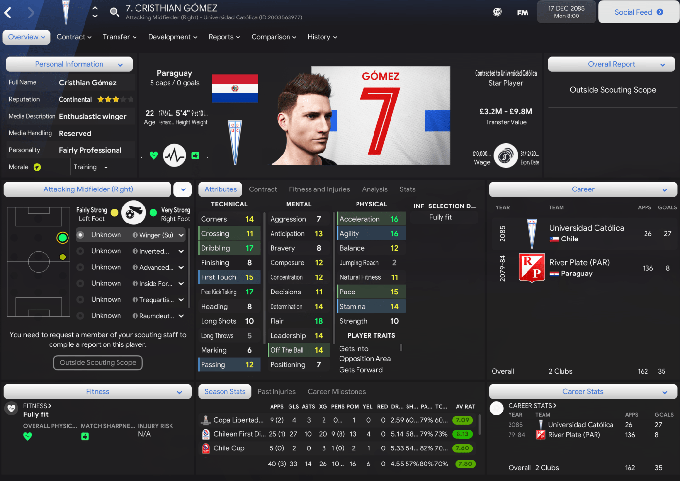 Lazaró celebrated his 101st birthday in May 2085 but, apparently, Football Manager can’t count past 100! He thought he’d wrapped up his career in style, winning the Chilean title to cap another treble. That leaves the Colombian/Brazilian with a career total of 46 cup victories and 42 national titles. What a legend!