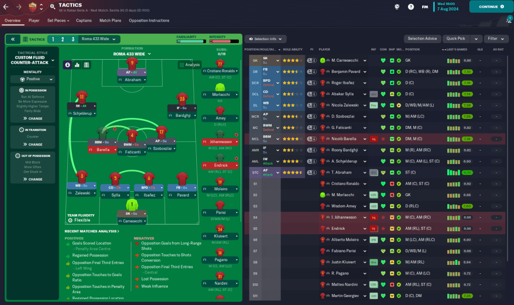 That took us into a run of really tricky games. First, we went to Napoli and had the best chances but earned a solid 0-0. We had a cagey start at home to Lazio but took control through Roony Bardghji before Abraham and a Ronaldo penalty killed them off. Three days later we went to Inter, who obviously scored their only shot before the 90th minute! I threw water bottles at half-time and it worked as Bardghji created two goals in a minute for Abraham and Barella, before Ronaldo scored off the bench again.