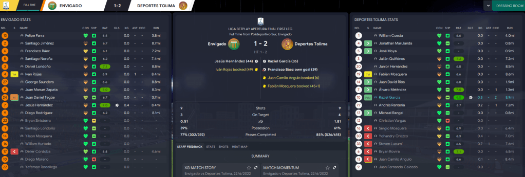 That took them into a massively unexpected first Apertura Final in club history against Tolima, who won all six games in their group. The home leg was up first and Envigado started well but got blown away by two goals in a minute before Hernández swiftly gave them some hope. And nothing happened in the second half! They played superbly in the second half to hold a dominant Tolima to 0-0 but couldn’t find a way through as Lazaró went attacking late on. And Tolima won Liga BetPlay Apertura.