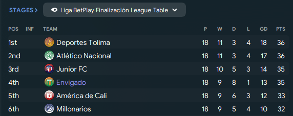 Envigado were suddenly just one point off the top of the league in what had developed into an exciting race for top spot, with four points separating first from sixth! But of course, winning the league only counts for Copa Libertadores qualification, rather than a title win.