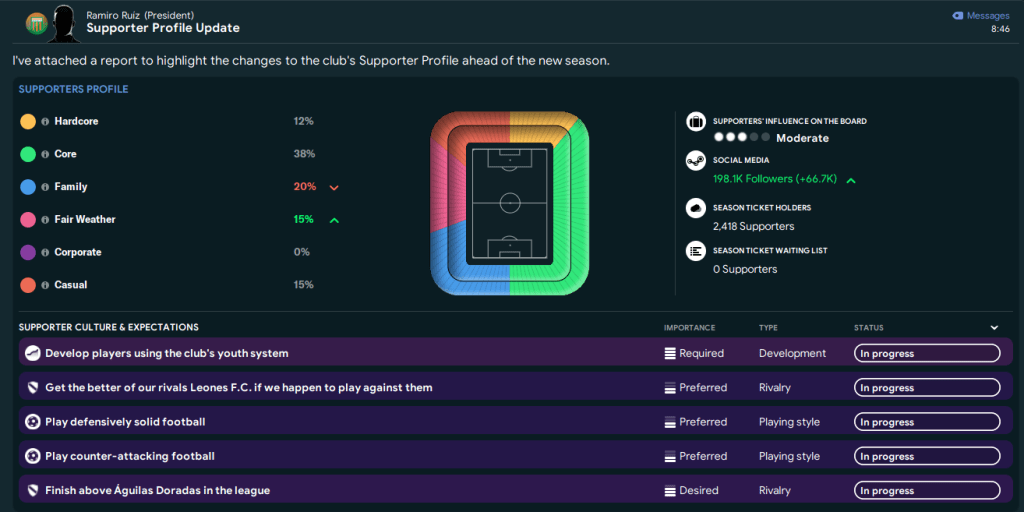 The club’s performance this season saw them gain 66,700 social media followers, which is a lot considering it takes them to 198,100 and they rarely get more than 3,000 people coming to matches! They also lost a few family fans and gained a few fair weather ones, with 50% still core or hardcore.