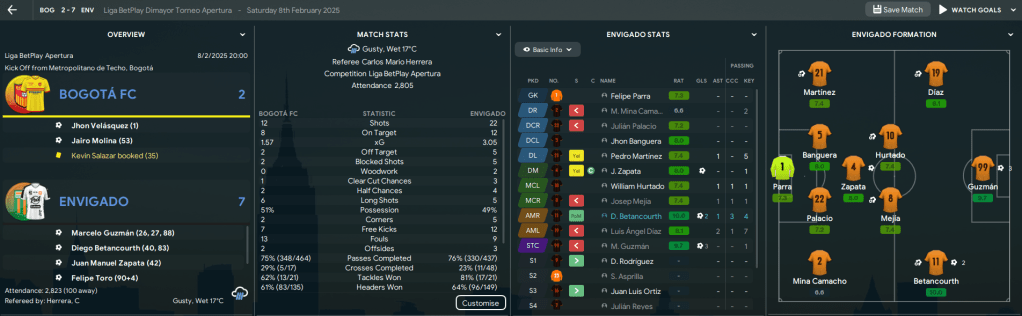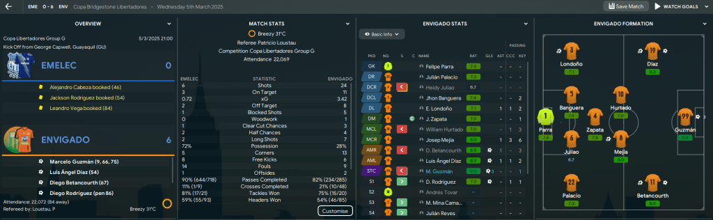 Their campaign began in Ecuador, where they absolutely destroyed Emelec with a club record 6-0 victory led by a Guzmán hat-trick! They backed that up with a 2-0 win at home to Táchira with goals by Mejía and winger Felipe Toro. Possibly the most high-profile game in Envigado history saw the South American champions visit Polideportivo Sur as Botafogo came to town. Could they win? Nope, Botafogo thumped them 4-1, with a brace from former Man UFC left-back Alex Telles and a goal from their £26m striker, then beat them 3-0 in Brazil.