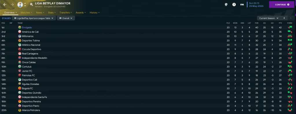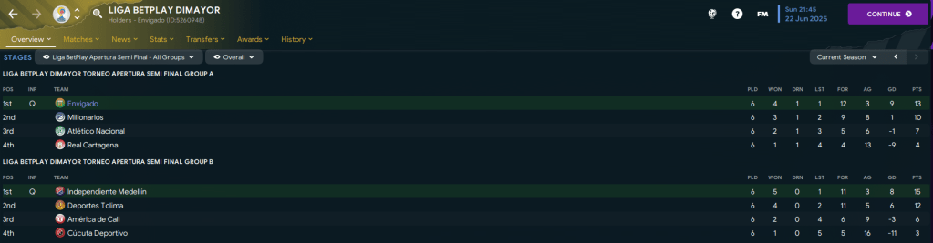 That saw them eventually finish a comfortable seven points clear of América with easily the lowest league-winning points total so far in this save. 17-year-old Guzmán was second-top scorer with 13 in 17 and got the highest average rating of 7.37 – what a player this kid is!