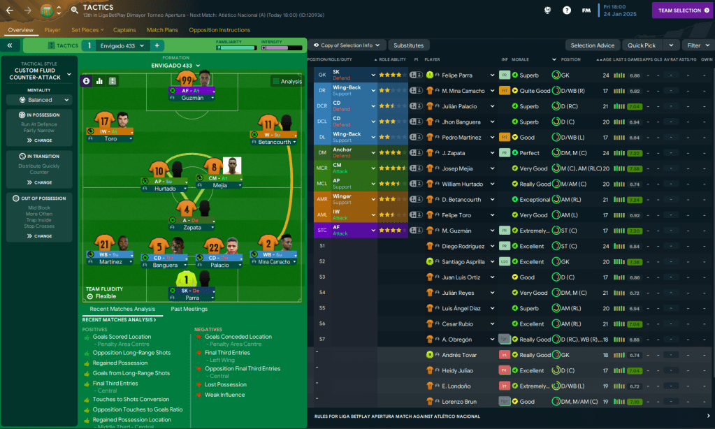 Lazaró was sticking with his 4-3-3 formation that had worked so nicely through his first three seasons. Marcelo Guzmán is now firmly the first-choice striker with 4-star ability compared to Diego Rodríguez’s 3.5-stars and he looks like a really special 17-year-old. New captain Juan Manuel Zapata and midfielder Josep Mejía, who’s now the best player at the club, remain the crucial pieces that make this team tick.