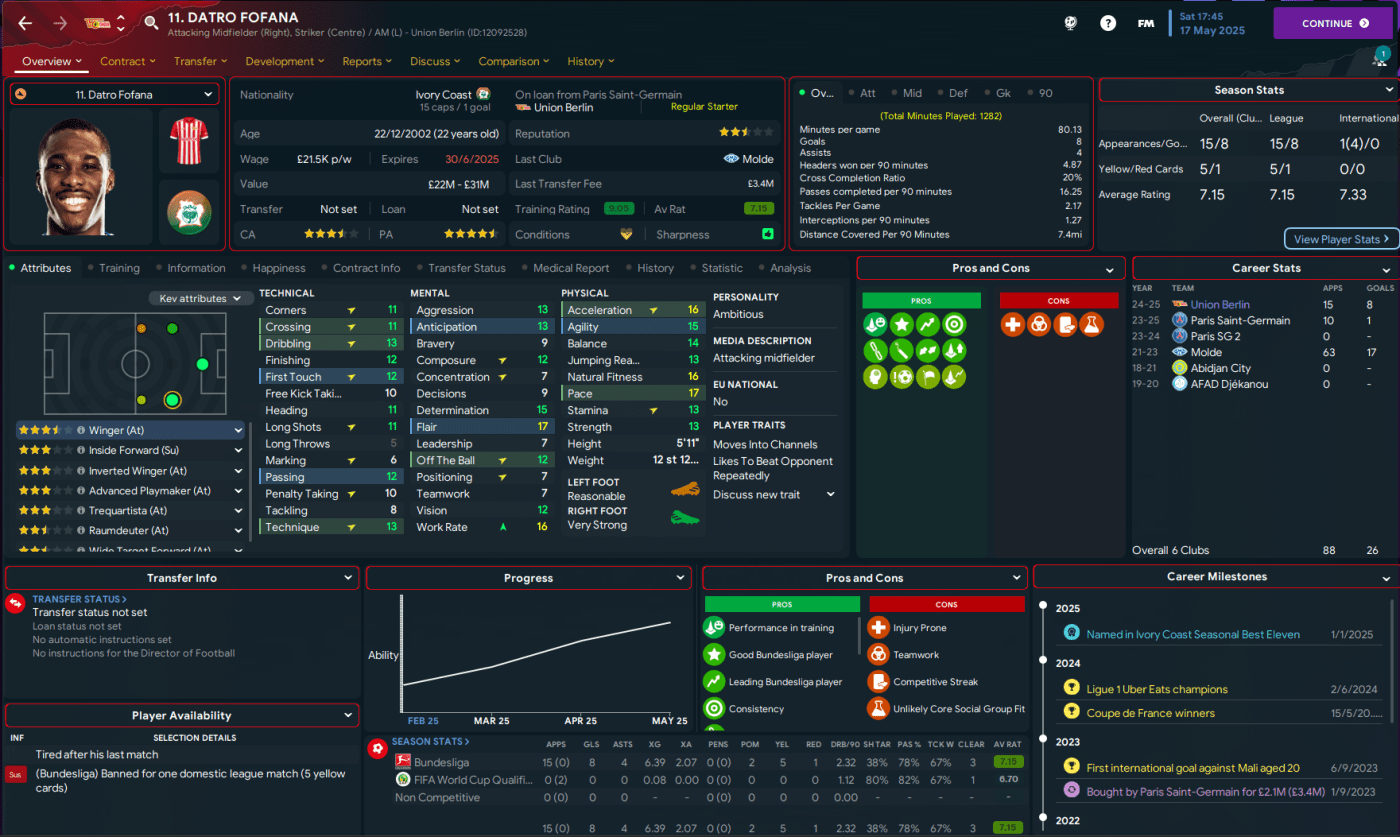 The season rounded out with 3-0 losses at champions Bayern and at home to Bremen. But Union still sealed a 13th-place finish in Bundesliga and Big Sam was delighted with his team’s turnaround. However, they stayed up with the second-fewest goals scored in Bundesliga (36) and only 3 teams conceded more than their 59. Elsewhere, Freiburg were relegated despite having 2 of the NxGn top 10 wonderkids and spending £35m on a player from Bayern!