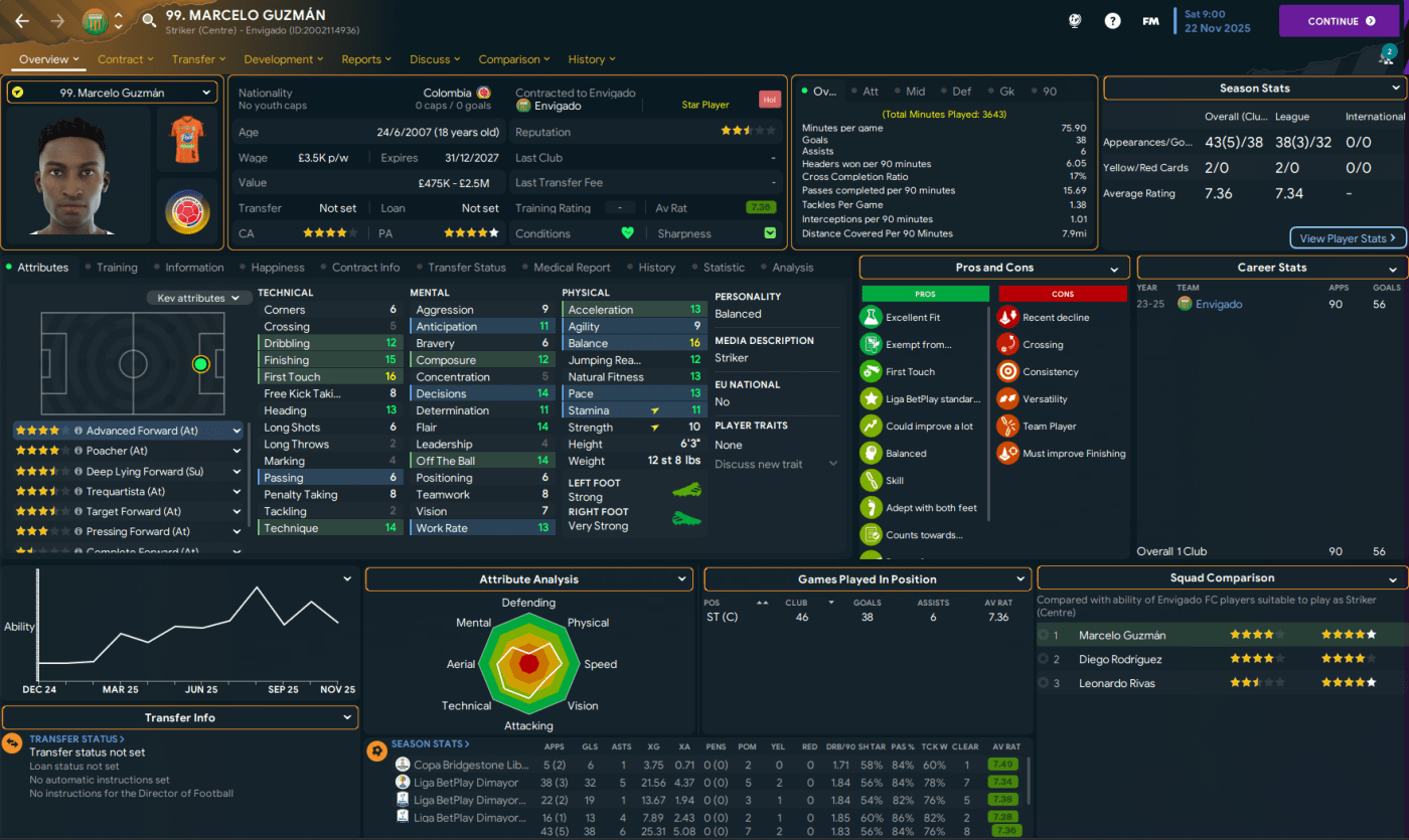 This was another slid season for Envigado, topping the Apertura league and coming runner-up in the post-season and reaching an eighth successive post-season in Finalización. Lazaró’s efforts saw Envigado hand him a new three-year contract worth £2.5k a week until 2028. But, in a strange set of circumstances, the club President immediately began takeover talks with a local entrepreneur that swiftly collapsed.