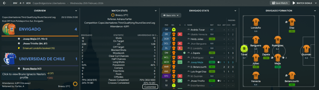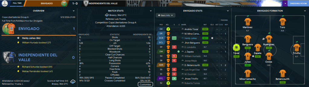 They kicked off with a great 2-0 win at Valle thanks as Díaz scored then put in the cross for Jhon Banguera to head home. They couldn’t compete with Fluminense, losing 2-0 at home then only 2-1 at Maracana, but did earn a strong 2-2 at home to Talleres with Florez grabbing a late equaliser and an even more impressive 1-1 in Argentina.