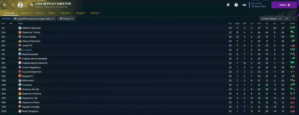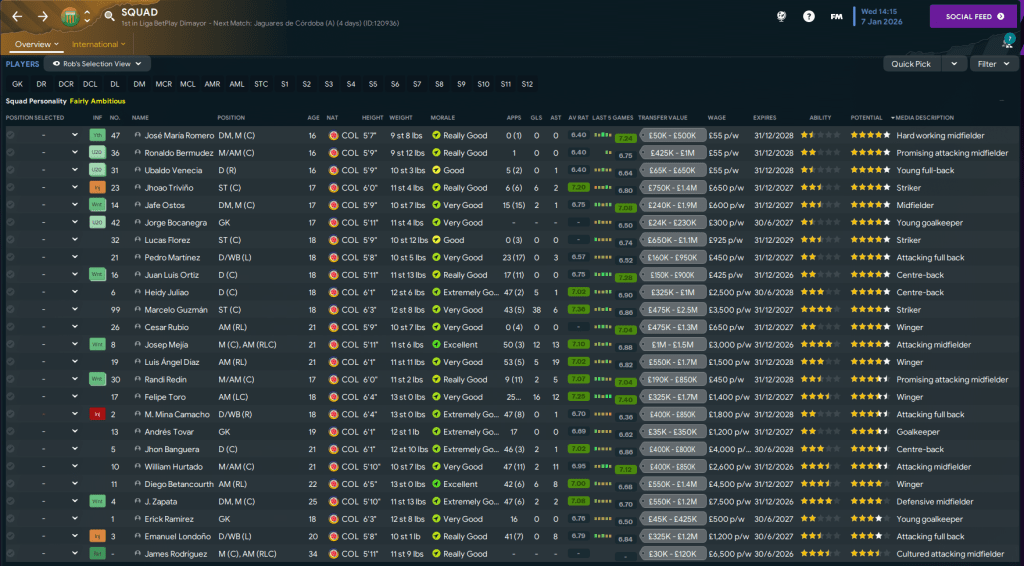 Good news was that James Rodríguez, who began his career at Envigado and rejoined last season, could now be registered for what would be the final season of his career as he announced he’ll retire in November. And the potential around Rodríguez was clear as 14 players had 5-star potential led by newly promoted José María Romero, who’s being retrained as a centre-back, Ronaldo Bermudez and Ubaldo Venecia.