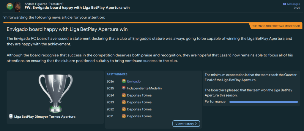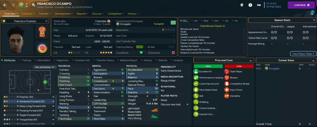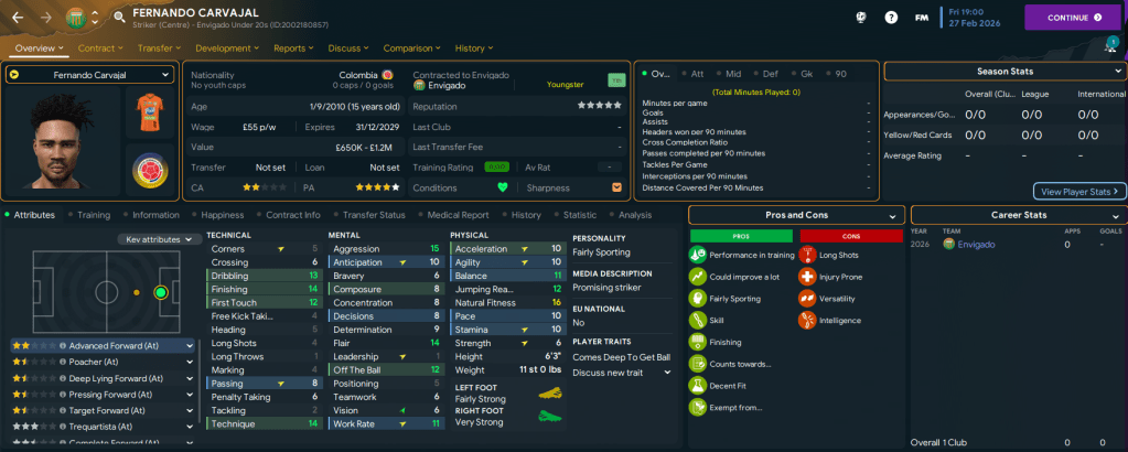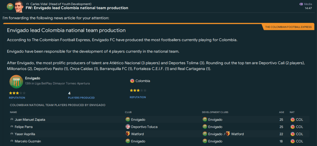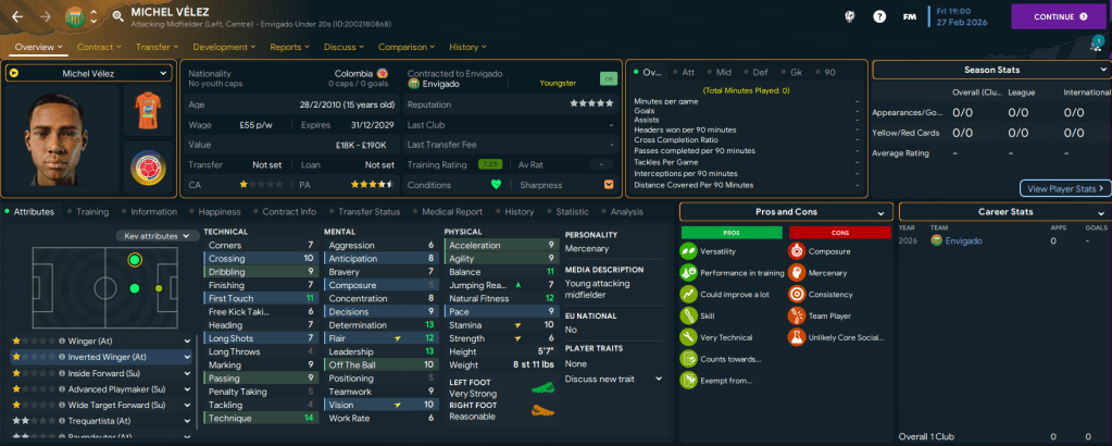 The main reason for allowing that move was homegrown superstar Marcelo Guzmán. At the age of 18, Guzmán had already scored 56 goals in 90 league games and beat Rodríguez’s club record for goals in a season with 38 in 2025. He was now considered the best player at the club along with fellow homegrown players Josep Mejía and Colombia international Juan Manuel Zapata. However, he began dropping hints that he wanted to play in a strong squad, while his agent keeps locking a minimum fee release clause of just £1.6m into his contract negotiations. So it looks like he won’t be here much longer.