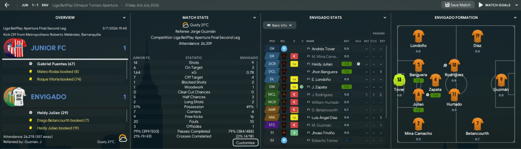 That teed up an unexpected Apertura Final against Junior. The first leg was at home and Envigado took full advantage, racking up 14 shots to six and Guzmán and Mejía sealed a 2-0 victory. Envigado started the away leg well and moved in front as Juliao headed home Rodríguez’s corner. Junior came back into it after thje break but Lazaró went defensive to hold them off. And a 1-1 was enough to win their first-ever Apertura title.