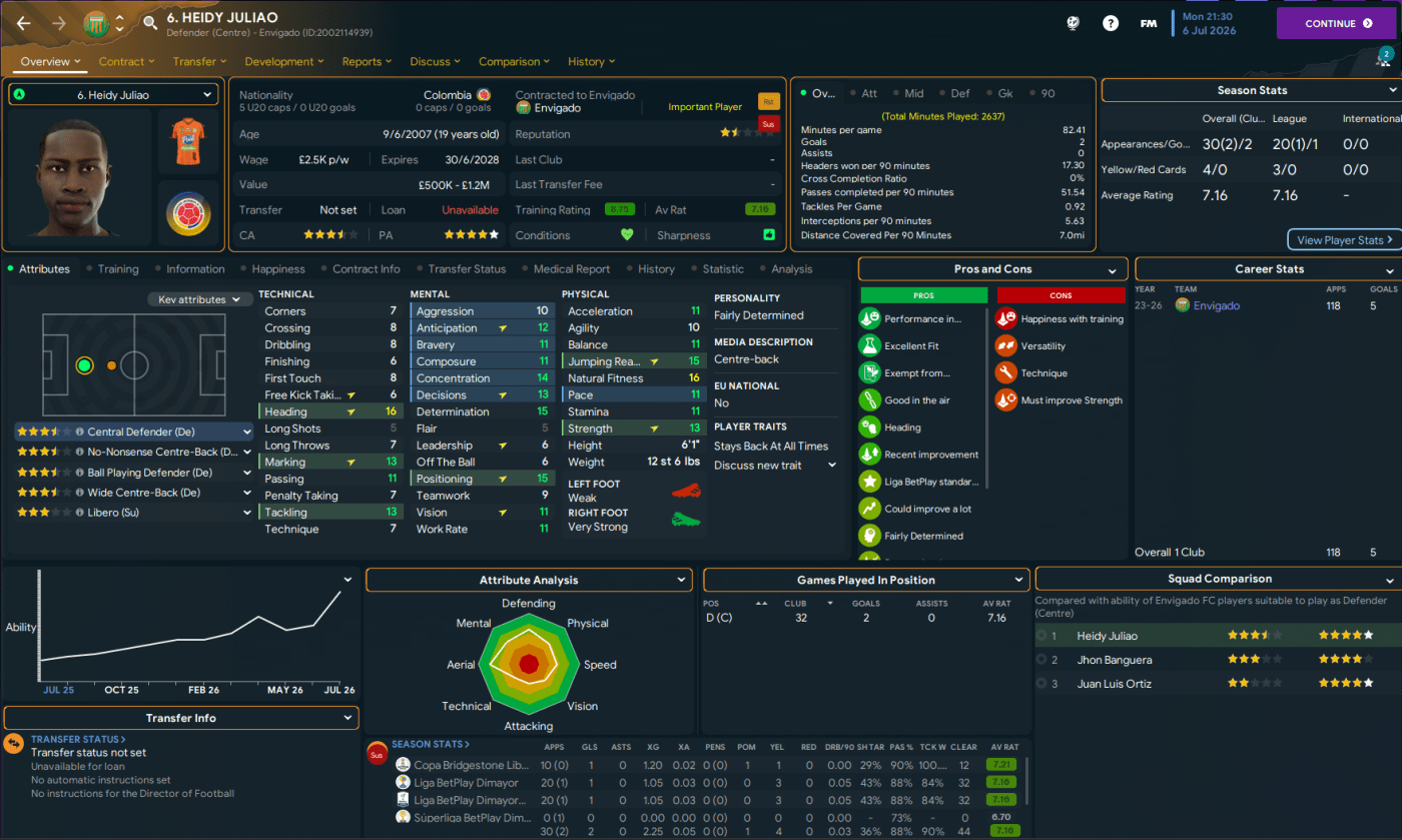 The main reason for allowing that move was homegrown superstar Marcelo Guzmán. At the age of 18, Guzmán had already scored 56 goals in 90 league games and beat Rodríguez’s club record for goals in a season with 38 in 2025. He was now considered the best player at the club along with fellow homegrown players Josep Mejía and Colombia international Juan Manuel Zapata. However, he began dropping hints that he wanted to play in a strong squad, while his agent keeps locking a minimum fee release clause of just £1.6m into his contract negotiations. So it looks like he won’t be here much longer.