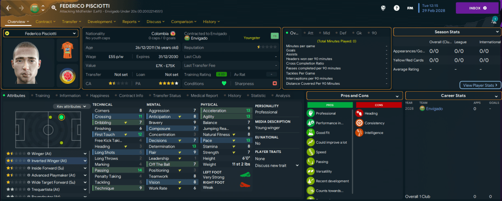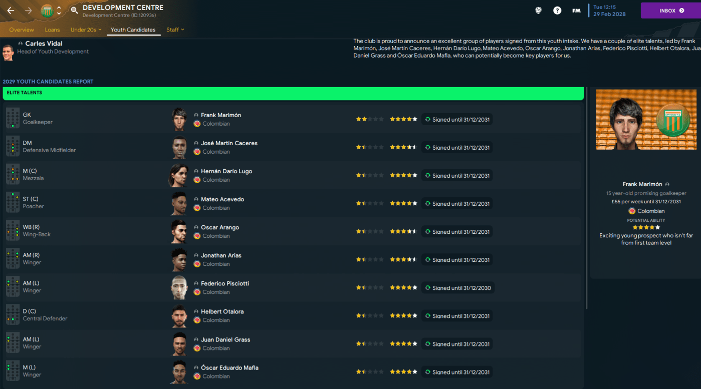 And those academy prospects were boosted by another awesome youth intake, which yet again may be the best so far. It includes seven players with 5-star potential, three with 4.5-star potential and two with 4-star potential. The pick of the bunch is a goalkeeper again in Frank Marimón, along with striker Mateo Acevedo, midfielder Hernán Darío Lugo, wingers Federico Pisciotti, Juan Daniel Grass and Óscar Eduardo Mafla and centre-back Helbert Otalora.
