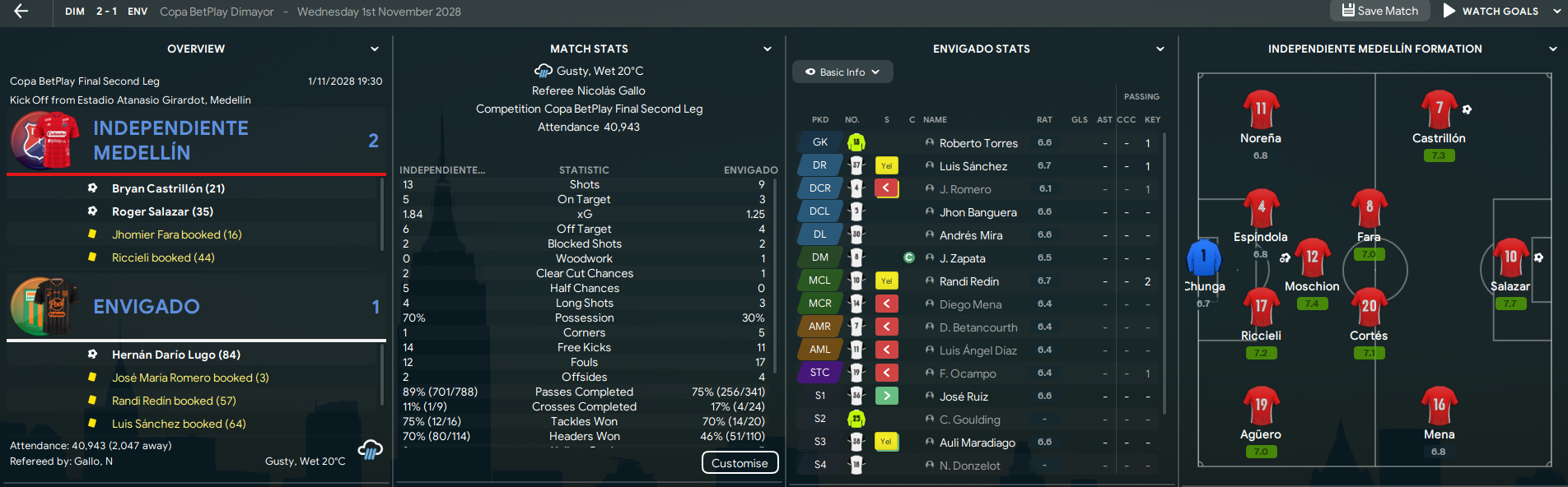 The Copa BetPlay Dimayor Final pitted Envigado against Independiente. However, they lost several key players like Mina Camacho and winger Diego Betancourth through injury, which saw Independiente absolutely dominate the first leg. However, Envigado took an early lead and managed to restrict the visitors to only an equaliser even when Bermudez got sent off. They got some players back for the away leg but started poorly as Independiente scored a free-kick and added a second. Lazaró made five changes, which worked as Ruiz slammed a shot off the post and 16-year-old midfielder Hernán Darío Lugo tucked home the rebound for his first senior goal. But, despite going full-on attack, no more highlights were offered and they lost their cup crown.