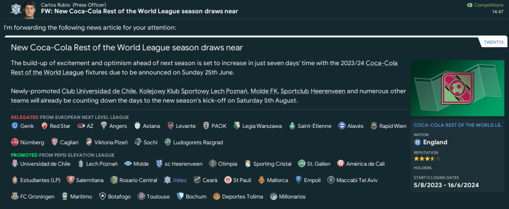 In the summer of 2023, the Rest of the World League saw 24 new clubs promoted and 16 relegated (go figure that one out), which are easier to show than list: