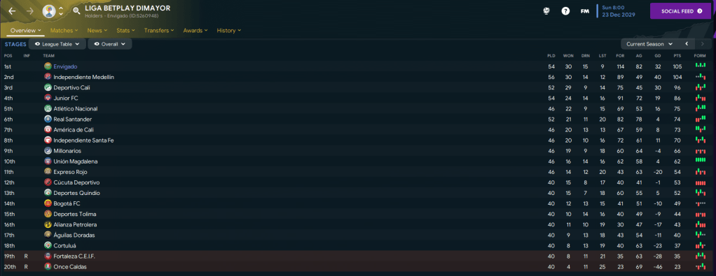 Rojas scored again as they maintained that lead with a 3-0 win at Cortuluá then scored a second hat-trick in four games to inspire a 3-1 win over Tolima. And a reminder, he’s 16 years old!! Out of nowhere, they got hammered 4-0 at Quindío but remained four points clear heading into the final two games. And a 2-2 at home to Independiente was enough to secure top spot with a game spare in Lazaró’s 500th game in management – but they lost Ocampo to injury for five weeks.