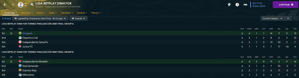 Having secured the league phase win, Lazaró was now focused on leading Envigado to their third official title. To do that, they needed to win a post-season group of Santa Fe, Deportivo Cali and Junior. And yet again, the scheduling madness saw them have to play six games in 13 days.