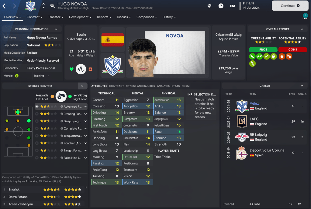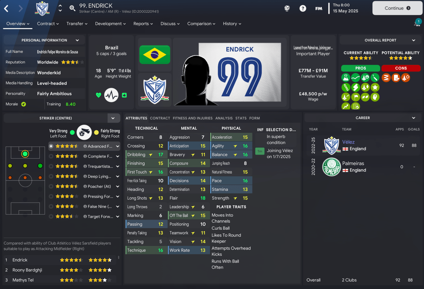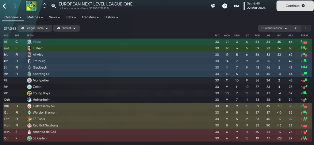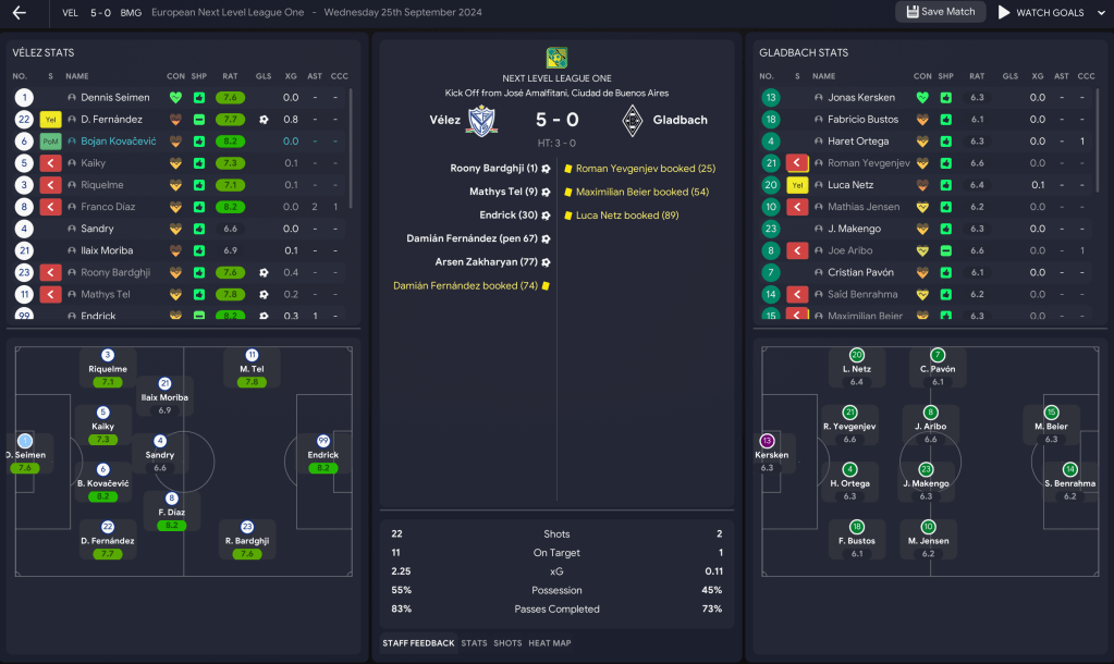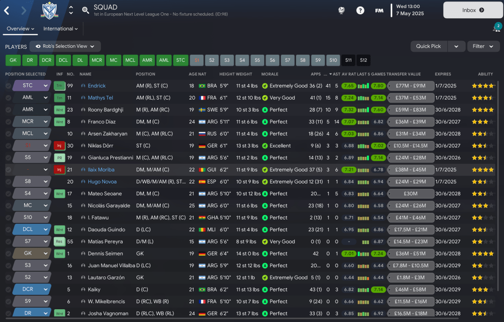 Vélez Sarsfield quickly progressed to the second tier of the new-look European Super League as we dominated the Rest of the World Africa division led by the talents of striker Endrick. Luckily, we managed to renew the youngster’s services for one more season, after he’d scored 64 in 70 league games over the last 2 seasons and scored twice on his Brazil debut over the summer.