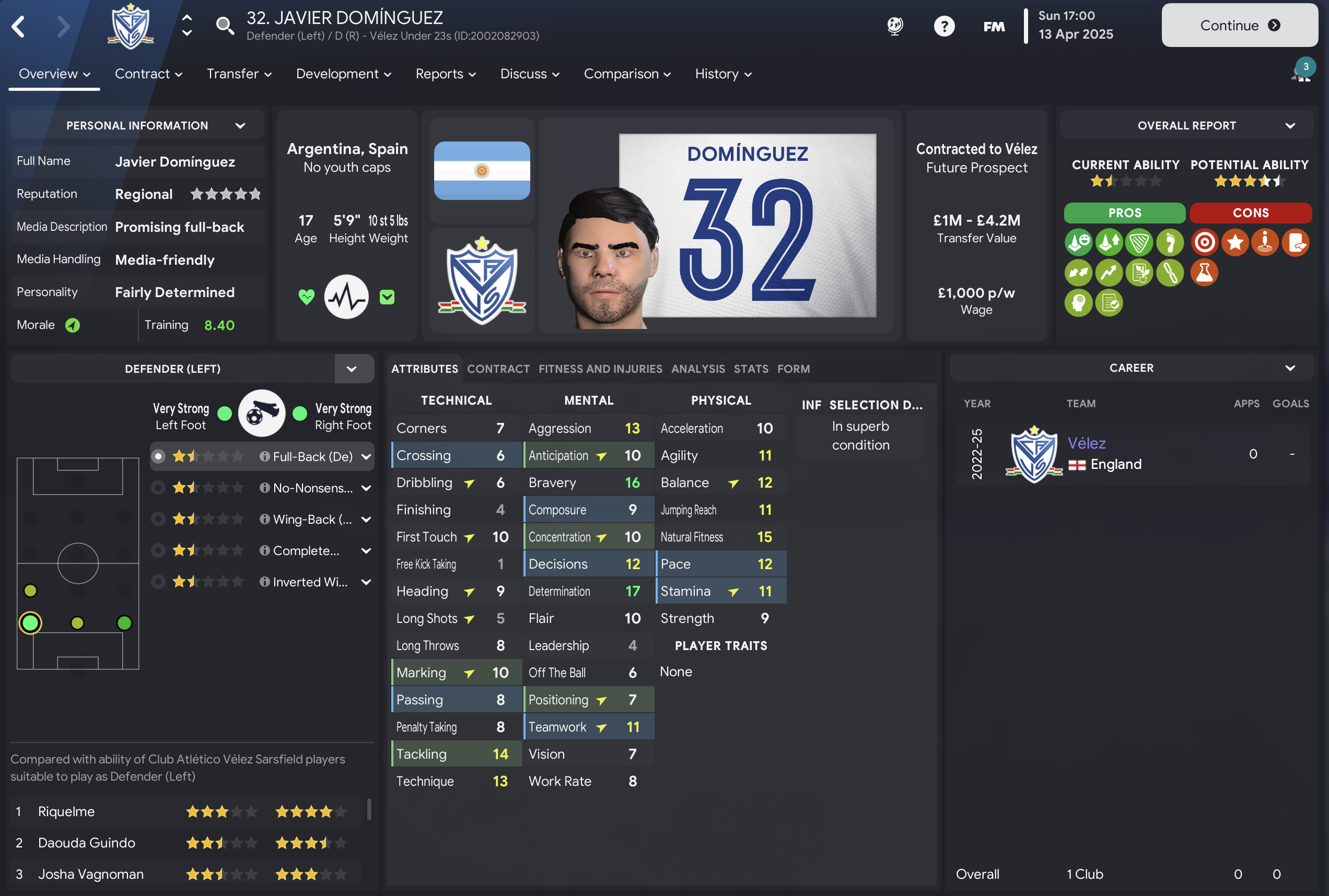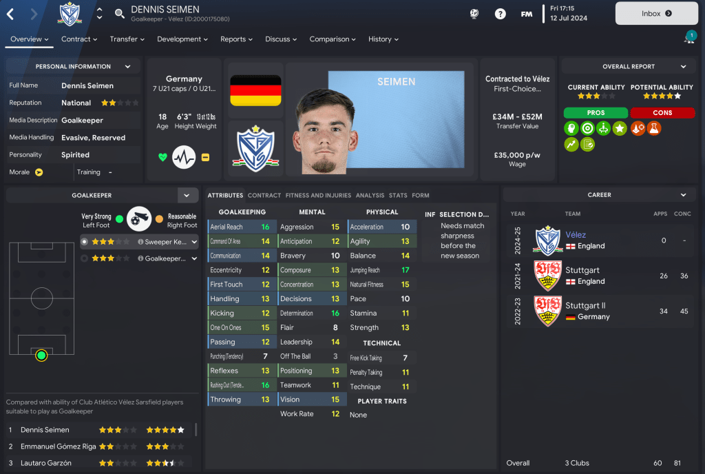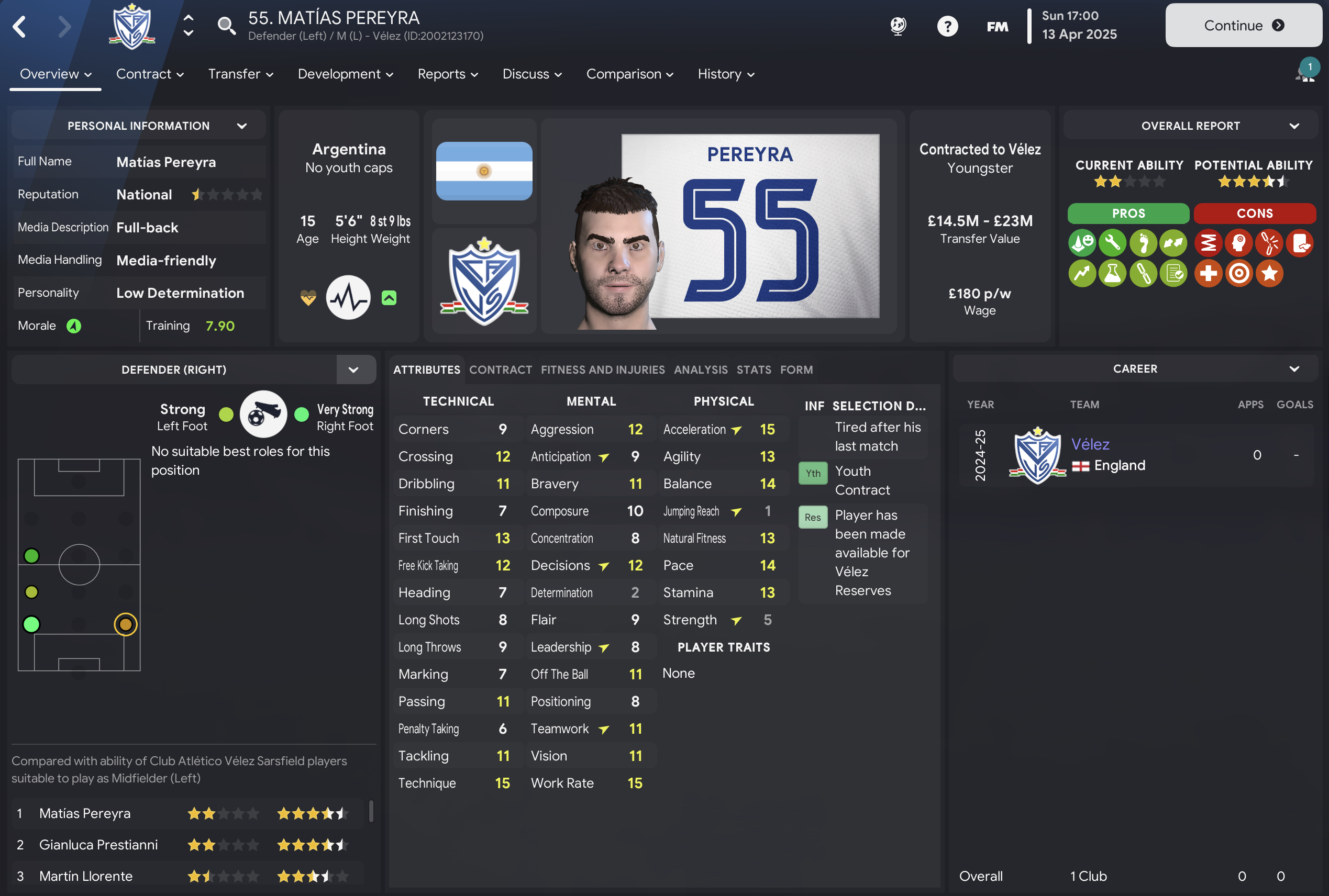 Vélez Sarsfield quickly progressed to the second tier of the new-look European Super League as we dominated the Rest of the World Africa division led by the talents of striker Endrick. Luckily, we managed to renew the youngster’s services for one more season, after he’d scored 64 in 70 league games over the last 2 seasons and scored twice on his Brazil debut over the summer.